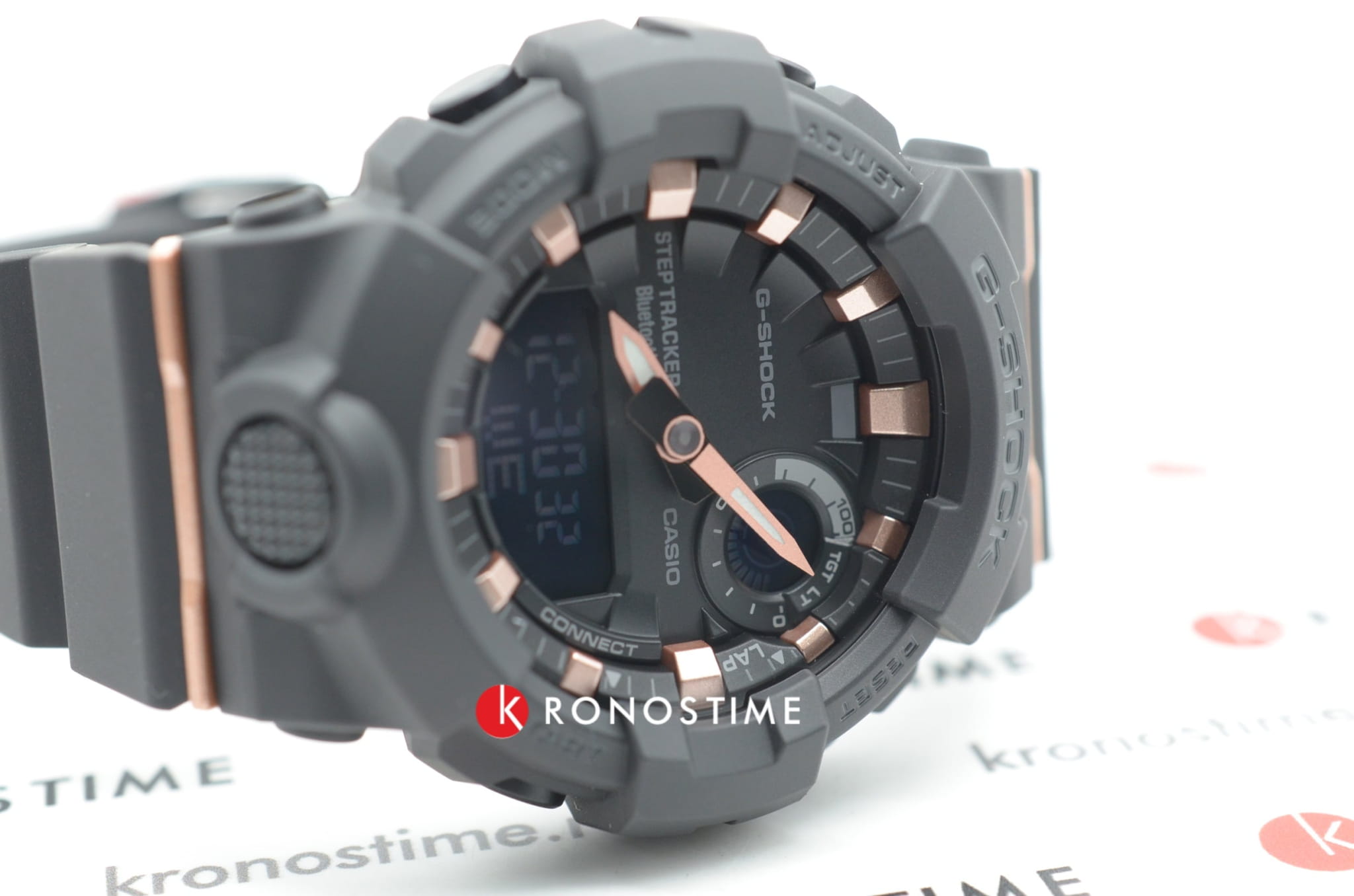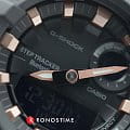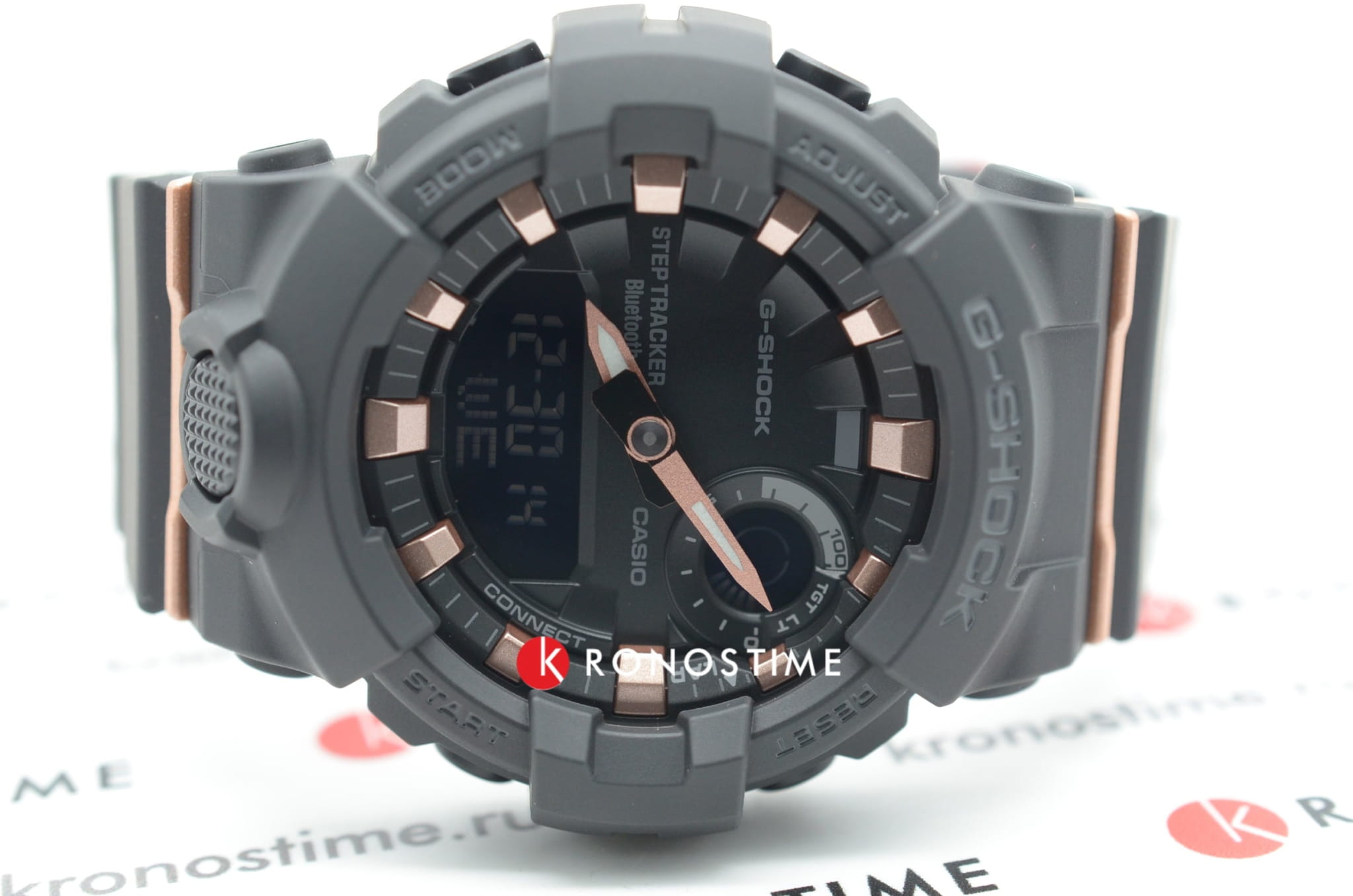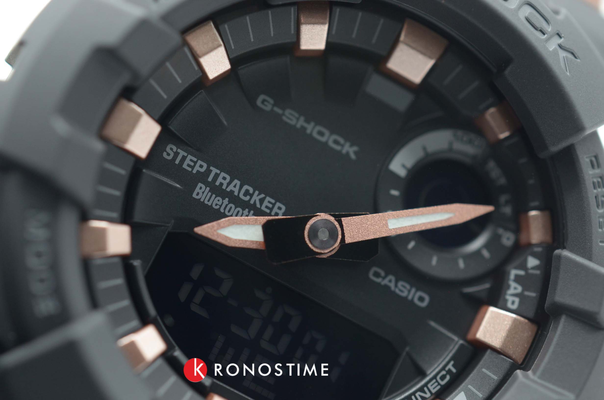 Компактный циферблат дополнен контрастными элементами в цвете розового золота, что обеспечивает отличную читаемость показателей. Модель по достоинству оценят любители спорта и фитнеса, ведь широкий функционал позволяет значительно повысить продуктивность тренировки. Часы оснащены трекером активности (шагомером), мультифункциональным таймером, секундомером, а с помощью технологии BluetoothBluetoothСовременная технология, позволяющая синхронизировать часы с телефоном и переносить данные. Часы с Bluetooth расширяют возможности вашего смартфона и делают его использование ещё более удобным. все данные могут передаваться и анализироваться в специальном приложении для смартфонов G-Shock Connected App. Японский кварцевый механизм с точностью хода +/- 15 секунд в сутки. Срок службы батарейки - 2 года. Функция перемещения стрелок для просмотра показателей с мини-дисплеев. Противоударный корпусУдаропрочный корпусМеханизм заключён в корпус, выполненный из современных материалов, устойчивых к ударам, механическим повреждениям и падению с высоты: инновационный пластик, карбон, нержавеющая сталь, титан. и браслет из надёжного пластика. Светодиодная подсветкаСветодиодная подсветкаСветодиодная или LED-подсветка обеспечивает появление яркого холодного свечения за счёт LED-элементов - маленьких лампочек. Они потребляют минимальное количество энергии, чаще всего можно встретить 1 светодиод, в нижней части циферблата.. Минеральное стекло. Водонепроницаемость 200 метров. ХронографХронографФункция позволяет измерять отрезки времени с особой точностью: часы, минуты, секунды. Верным признаком хронографа является наличие на циферблате 3 дополнительных окошек-счётчиков., автоматический календарь, мировое времяМировое время Полезное часовое усложнение, отображающее время в основных городах и известных областях по всему миру, оно связано с часовыми поясами, удобно для путешественников и бизнесменов. . Габариты: 50,7 x 45,2 x 15,5 мм.
