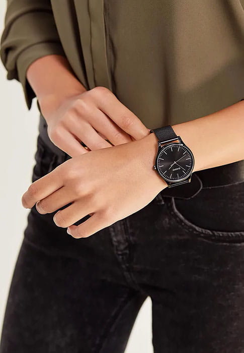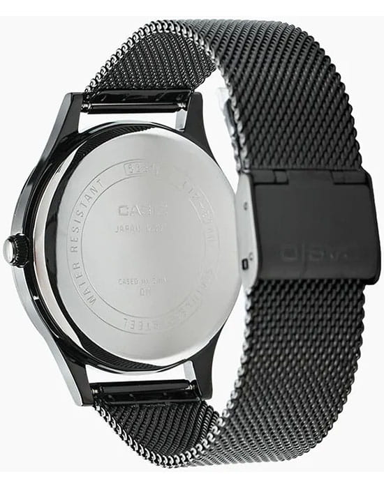 Стильный дизайн аксессуара выдержан в темных тонах. На браслет миланского плетения и корпус, сделанные из стали, нанесено защитное IP-покрытиеIP-покрытиеМетод ионного напыления. Демонстрирует повышенную устойчивость к истиранию, окислению и химическим веществам. Под воздействием высокого давления и температуры около 1500°C молекулы металла надёжно соединяются с частицами корпуса часов.. На круглом, черном циферблате расположены аккуратные временные отметки в виде штрихов. Защита часов от негативных воздействий обеспечивается минеральным стеклом. Благодаря кварцевому типу механизма отсутствует необходимость каждый раз заводить часы. Вес аксессуара составляет 60 грамм.