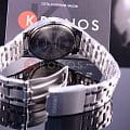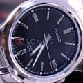 Практичная модель сочетается с любой одеждой, чёрный циферблат с контрастными метками и стрелками никогда не утратит актуальности. Браслет наручных часов сделан из нержавеющей стали 316L, он сохранит безупречный внешний вид на долгие годы. Для корпуса выбрали гипоаллергенную латунь. Высокоточный кварцевый механизм. Водостойкость при давлении 5 бар. Минеральное стекло устойчиво к образованию царапин. Яркая люминесцентная подсветкаЛюминесцентное покрытиеПозволяет считывать показания времени в темноте. Производители наносят на стрелки, часовые индексы, безель или поверхность циферблата светонакопительный состав, дающий холодное свечение.. Удобная раскладная застёжка расстёгивается одним касанием. Габариты: 39 x 46,9 x 8,4 мм.
