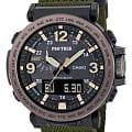, секундомер, хронографХронографФункция позволяет измерять отрезки времени с особой точностью: часы, минуты, секунды. Верным признаком хронографа является наличие на циферблате 3 дополнительных окошек-счётчиков., календарь, мировое времяМировое время Полезное часовое усложнение, отображающее время в основных городах и известных областях по всему миру, оно связано с часовыми поясами, удобно для путешественников и бизнесменов. – 29 часовых поясов. Это часы на солнечной батарее , функция сохранения энергии позволяет модели работать без подзарядки на протяжении 25 месяцев. Текстильный ремешок цвета хаки. Ударопрочный корпусУдаропрочный корпусМеханизм заключён в корпус, выполненный из современных материалов, устойчивых к ударам, механическим повреждениям и падению с высоты: инновационный пластик, карбон, нержавеющая сталь, титан. из пластика и стали 316L с IP-покрытиемIP-покрытиеМетод ионного напыления. Демонстрирует повышенную устойчивость к истиранию, окислению и химическим веществам. Под воздействием высокого давления и температуры около 1500°C молекулы металла надёжно соединяются с частицами корпуса часов.. Минеральное стекло. Устойчивость к температурам ниже -10°C. Двойная светодиодная подсветкаСветодиодная подсветкаСветодиодная или LED-подсветка обеспечивает появление яркого холодного свечения за счёт LED-элементов - маленьких лампочек. Они потребляют минимальное количество энергии, чаще всего можно встретить 1 светодиод, в нижней части циферблата.. Класс водостойкости WR 100. Габариты: 51,6 x 51,5 x 13,4 мм.