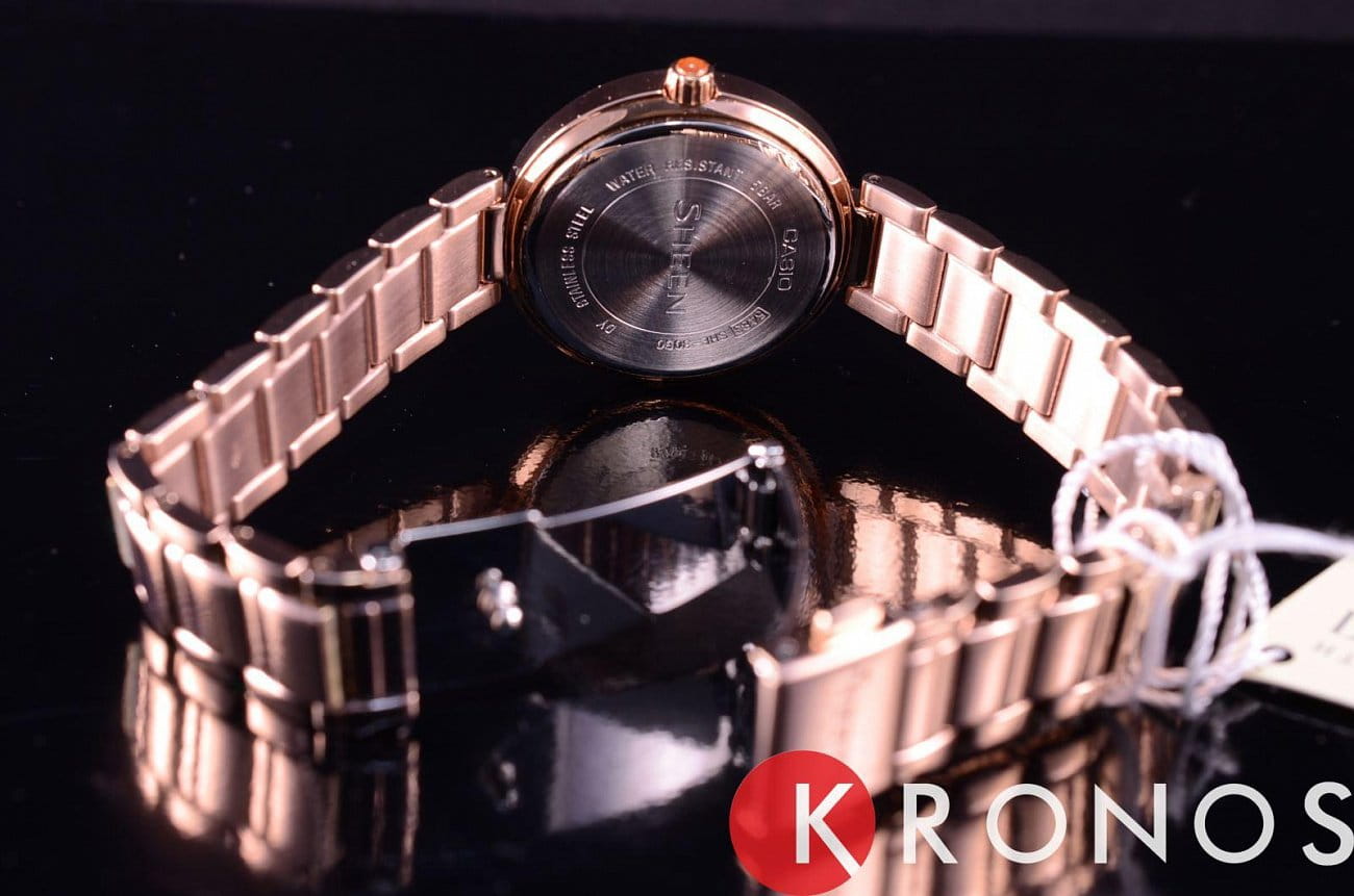 Современные женские кварцевые наручные часы. Круглый корпус и браслет часов выполнены из стали с IP покрытием. Циферблат украшен кристаллами Swarovski и золотыми стрелками. Водонепроницаемость часов до 50 метров, минеральное стекло, устойчивое к царапинам.