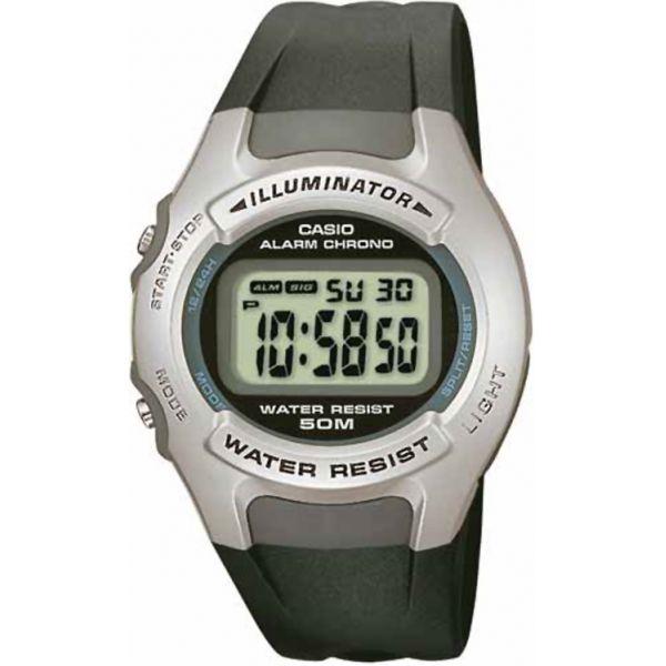 Спортивные мужские часы. Автоматический календарь. 12и 24-часовой формат времени. Секундомер. Отображение времени в двух часовых поясах. Таймер. Будильник. Мировое время. Корпус - Пластиковый; Стекло - Пластик; Водозащита - 50 м. (WR 50); Материал ремешка - Пластиковый; Цвет ремешка - Черный; Цвет циферблата - Lcd.