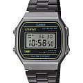 Casio A168WEHB-1A — это наручные часы в винтажном стиле, вдохновлённые дизайном карманного калькулятора SL-800 1983 года. Они сочетают ретро-эстетику с современными функциями. Размер корпуса: 38,6 × 36,3 × 9,6 мм Вес: 49 г Материал корпуса и безеля: с хромированным покрытием Браслет: нержавеющая сталь с регулируемой застёжкой Водонепроницаемость: WR 30 защита от брызг Питание: батарея CR2016 с ресурсом около 7 лет Стекло: пластиковое Подсветка: электролюминесцентнаяЭлектролюминесцентная подсветкаЭлектролюминесцентная панель устанавливается под ЖК-экраном часов, при нажатии кнопки электричество преобразуется в свет за счёт подачи напряжения на атомы фосфора, такой тип подсветки позволяет освещать весь циферблат. с синим цветом Функции: ежедневный будильник, почасовой сигнал, автоматический календарь, 12/24-часовой формат времени, секундомер с точностью 1/100 секунды и максимальным временем измерения 59'59.99" Эта модель идеально подойдёт для ценителей ретро-дизайна и функциональных аксессуаров.