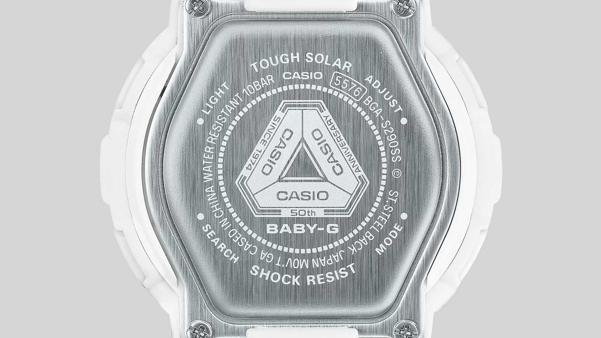 Японские женские часы Casio Baby-G BGA-S290SS-2A из коллекции Baby-G. Серия, которая выражает спортивность и цвет, которые являются основой бренда Baby-G. Минеральное стеклоМинеральное стеклоМинеральное стекло представляет собой искусственно выращенный минерал кварца. Такое стекло отличается особой устойчивостью к повреждениям и царапинам. Уступает по некоторым качествам сапфировому стеклу. устойчивое к появлению царапин, обладающее высокой прозрачностью. Корпус часов изготовлен из пластика. БезельБезельВнешний ободок, закрепляющий стекло. В спортивных часах так называется поворотное кольцо с делениями на циферблате, выполняет роль таймера – замеряет отрезки времени на шкале. Неподвижный безель – элемент декора. Однонаправленно вращающийся безель на дайверских часах позволяет фиксировать моменты погружения и выныривания на поверхность. из нержавеющей стали с пластиковой вставкой. Ударопрочный корпусУдаропрочный корпусМеханизм заключён в корпус, выполненный из современных материалов, устойчивых к ударам, механическим повреждениям и падению с высоты: инновационный пластик, карбон, нержавеющая сталь, титан. защищает механизм от ударов и вибрации. Циферблат подсвечивается светодиодомСветодиодная подсветкаСветодиодная или LED-подсветка обеспечивает появление яркого холодного свечения за счёт LED-элементов - маленьких лампочек. Они потребляют минимальное количество энергии, чаще всего можно встретить 1 светодиод, в нижней части циферблата.. Функция Мирового времениМировое время Полезное часовое усложнение, отображающее время в основных городах и известных областях по всему миру, оно связано с часовыми поясами, удобно для путешественников и бизнесменов. . СекундомерСекундомерСекундоме́р — прибор, способный измерять интервалы времени с точностью до долей секунды. с точностью измерения 1/100 секунды и измерением до 23 часов 59 минут 59,99 cек. ТаймерТаймерОтсчитывает секунды в обратном направлении в заданном интервале времени. после каждой пройденной минуты издается звуковой сигнал, в течении последних 10 секунд сигнал издается каждую секунду, автоматический календарь, 12/24 отображение времени. 5 ежедневных будильниковБудильникБуди́льник — часы, в заданный момент времени подающие звуковой, световой и/или в редких случаях другой сигнал.. Класс водозащиты: 100 метров, позволит плавать без погружения. Ремешок из полимерного материала на стандартной застежке.