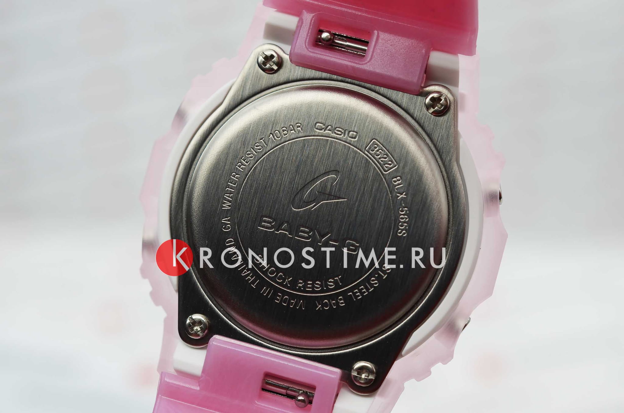 Женские японские часы-хронографХронографФункция позволяет измерять отрезки времени с особой точностью: часы, минуты, секунды. Верным признаком хронографа является наличие на циферблате 3 дополнительных окошек-счётчиков. Casio Baby-G BLX-565S-4E, кварцевый механизм с высокой точностью. Класс водозащиты: 100 метров, позволит плавать, нырять и заниматься другими водными видами спорта. Корпус часов изготовлен из пластика розового цвета. Ударопрочный корпусУдаропрочный корпусМеханизм заключён в корпус, выполненный из современных материалов, устойчивых к ударам, механическим повреждениям и падению с высоты: инновационный пластик, карбон, нержавеющая сталь, титан. защищает механизм от ударов и вибрации. Светодиодная подсветкаСветодиодная подсветкаСветодиодная или LED-подсветка обеспечивает появление яркого холодного свечения за счёт LED-элементов - маленьких лампочек. Они потребляют минимальное количество энергии, чаще всего можно встретить 1 светодиод, в нижней части циферблата. освещает весь циферблат, после отпускания кнопки свечение продолжается еще некоторое время. Особенность модели в функциях будильникаБудильникБуди́льник — часы, в заданный момент времени подающие звуковой, световой и/или в редких случаях другой сигнал., секундомераСекундомерСекундоме́р — прибор, способный измерять интервалы времени с точностью до долей секунды., таймераТаймерОтсчитывает секунды в обратном направлении в заданном интервале времени. и мирового времениМировое время Полезное часовое усложнение, отображающее время в основных городах и известных областях по всему миру, оно связано с часовыми поясами, удобно для путешественников и бизнесменов. . Циферблат подсвечивается ярким светодиодомСветодиодная подсветкаСветодиодная или LED-подсветка обеспечивает появление яркого холодного свечения за счёт LED-элементов - маленьких лампочек. Они потребляют минимальное количество энергии, чаще всего можно встретить 1 светодиод, в нижней части циферблата.. Послесвечение. Цвет подсветки: белый. Отображение возраста и фазы Луны. Отображение сведений о приливах и отливах на заданную дату и время. 12-ти и 24-х часовой формат времени. Функции включения/отключения летнего времени и включения/отключения звука. Батарея рассчитана на 3 года. Задняя крышка крепится на 4-х винтах.