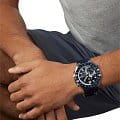 Ремешок из синего полимера оснащён стандартной классической застёжкой, обеспечивающей комфортное ношение и надёжную фиксацию на запястье. Водозащита до 200 метров (20 бар) позволяет использовать часы при плавании и дайвинге.