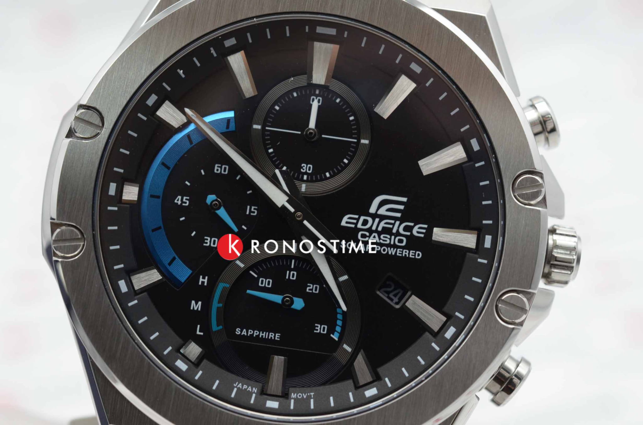 Наручные часы в серебристом исполнении привлекают контрастными голубыми деталями и лаконичным оформлением. Помогут идеально дополнить образ на каждый день. Аксессуар стал обладателем ультратонкого корпуса, по сравнению с большинством представителей Edifice – 9,9 мм. Модель изготовлена из стали 316L, материал устойчив к коррозии и механическим воздействиям. Японский кварцевый механизм обеспечивает питанием солнечная батарейка . Указатель минутной стрелки хронографаХронографФункция позволяет измерять отрезки времени с особой точностью: часы, минуты, секунды. Верным признаком хронографа является наличие на циферблате 3 дополнительных окошек-счётчиков. на секторной части циферблата. Сапфировое стекло с антибликовым покрытием. Водостойкость 100 метров. Люминесцентная подсветкаЛюминесцентное покрытиеПозволяет считывать показания времени в темноте. Производители наносят на стрелки, часовые индексы, безель или поверхность циферблата светонакопительный состав, дающий холодное свечение.. Застёжка с системой блокировки. Секундомер, отображение числа. Габариты: 50,2 x 45,4 x 9,9 мм.