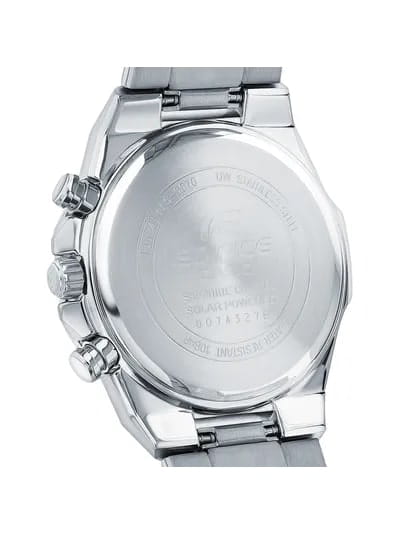 Модель Casio Edifice EFS-S570D-3A сочетает элегантный дизайн с передовыми технологиями. Корпус из нержавеющей стали диаметром 44 мм и толщиной всего 9,7 мм обеспечивает комфортное ношение, а восьмиугольный безельБезельВнешний ободок, закрепляющий стекло. В спортивных часах так называется поворотное кольцо с делениями на циферблате, выполняет роль таймера – замеряет отрезки времени на шкале. Неподвижный безель – элемент декора. Однонаправленно вращающийся безель на дайверских часах позволяет фиксировать моменты погружения и выныривания на поверхность. с матовой отделкой придаёт спортивный и стильный вид. Часы оснащены солнечной батареейTough SolarТехнология основана на подзарядке аккумулятора от источника солнечного света, специальная панель улавливает солнечные лучи и преобразует их в энергию для работы часов. Достаточно пары минут нахождения на солнце для функционирования часов в течении суток., обеспечивающей стабильную работу без необходимости замены элемента питания. Сапфировое стеклоСапфировое стеклоПрочный и надёжный материал из кристалла сапфира синтетического происхождения, характеризующийся особой твёрдостью и устойчивостью к царапинам и повреждениям. с антибликовым покрытием защищает циферблат от царапин и улучшает читаемость. Функциональность модели включает хронографХронографФункция позволяет измерять отрезки времени с особой точностью: часы, минуты, секунды. Верным признаком хронографа является наличие на циферблате 3 дополнительных окошек-счётчиков. с точностью до 1 секунды и максимальным временем измерения 59 минут 59 секунд, а также индикацию датыВечный календарьКлассическое часовое усложнение, представляющее собой календарь, рассчитанный на несколько лет вперёд (стандартно – до 2099 года). Определяет текущую дату, день недели, месяц.. Водонепроницаемость до 100 метров делает эти часы подходящими для плавания и других водных активностей. Casio Edifice EFS-S570D-5A — это стильный и функциональный аксессуар для тех, кто ценит надежность и современные технологии.