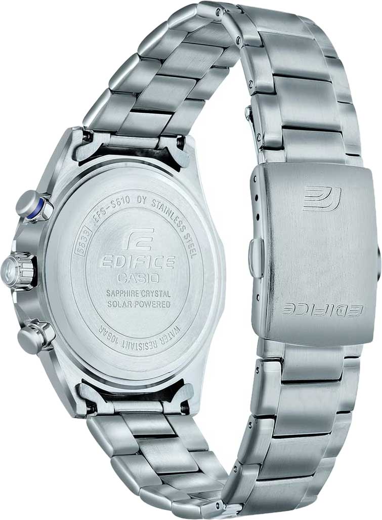 Японские мужские часы с хронографом Casio Edifice EFS-S610D-1AVUDF, кварцевый механизм с высокой точностью. Сапфировое стекло устойчивое к появлению царапин, обладающее высокой прозрачностью. Класс водозащиты: 100 метров, позволит плавать, нырять и заниматься другими водными видами спорта. Корпус часов изготовлен из стали, цвета.