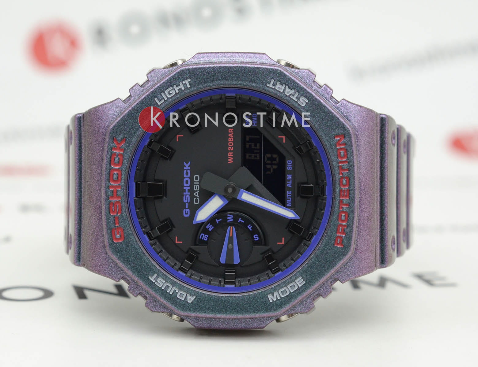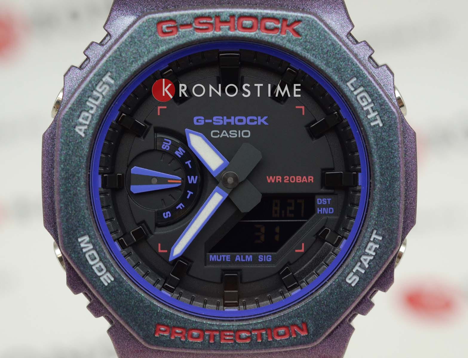 Японские мужские часы Casio G-Shock GA-2100AH-6A. Для тех, кто ставит перед собой более высокие цели в виртуальном мире — и в реальной жизни! Представляем G-SHOCK, вдохновленный решимостью, необходимой для достижения высочайших уровней компьютерных игр и выживания. Геймеры знают, что нужно для достижения высоких результатов в экшенах и стрелялках. Эти часы воссоздают захватывающий, постоянно меняющийся игровой мир с помощью поляризованной краски фиолетового и зеленого цветов, которая меняет цвет в зависимости от угла обзора. Такие детали, как оптический прицел для наведения прицела на цель, воплощены в оранжевых акцентах и графике на жидкокристаллическом экране, создавая игривый дизайн, который плавно перемещается между реальным и виртуальным мирами. Carbon Core GuardCarbon Core Guard Новейшая структура корпуса, разработанная Casio. Полиуретановая пластина дополнительно усилена карбоновыми вставками, что придаёт специальную защиту от механических повреждений. Карбон отличается лёгкостью и прочностью.. Минеральное стеклоМинеральное стеклоМинеральное стекло представляет собой искусственно выращенный минерал кварца. Такое стекло отличается особой устойчивостью к повреждениям и царапинам. Уступает по некоторым качествам сапфировому стеклу. устойчивое к появлению царапин, обладающее высокой прозрачностью. Светодиодная подсветкаСветодиодная подсветкаСветодиодная или LED-подсветка обеспечивает появление яркого холодного свечения за счёт LED-элементов - маленьких лампочек. Они потребляют минимальное количество энергии, чаще всего можно встретить 1 светодиод, в нижней части циферблата., настраиваемое послесвечение 1,5 или 3сек. Мировое время Мировое время Полезное часовое усложнение, отображающее время в основных городах и известных областях по всему миру, оно связано с часовыми поясами, удобно для путешественников и бизнесменов. 31 часовой пояс (48 городов + всемирное координированное время UTCUTCВсемирное кординационное время, не имеющее привязки к географическому положению Гринвича, основывается на атомном отсчёте времени. Регулировка времени осуществляется более точно, чем устаревшее GMT.