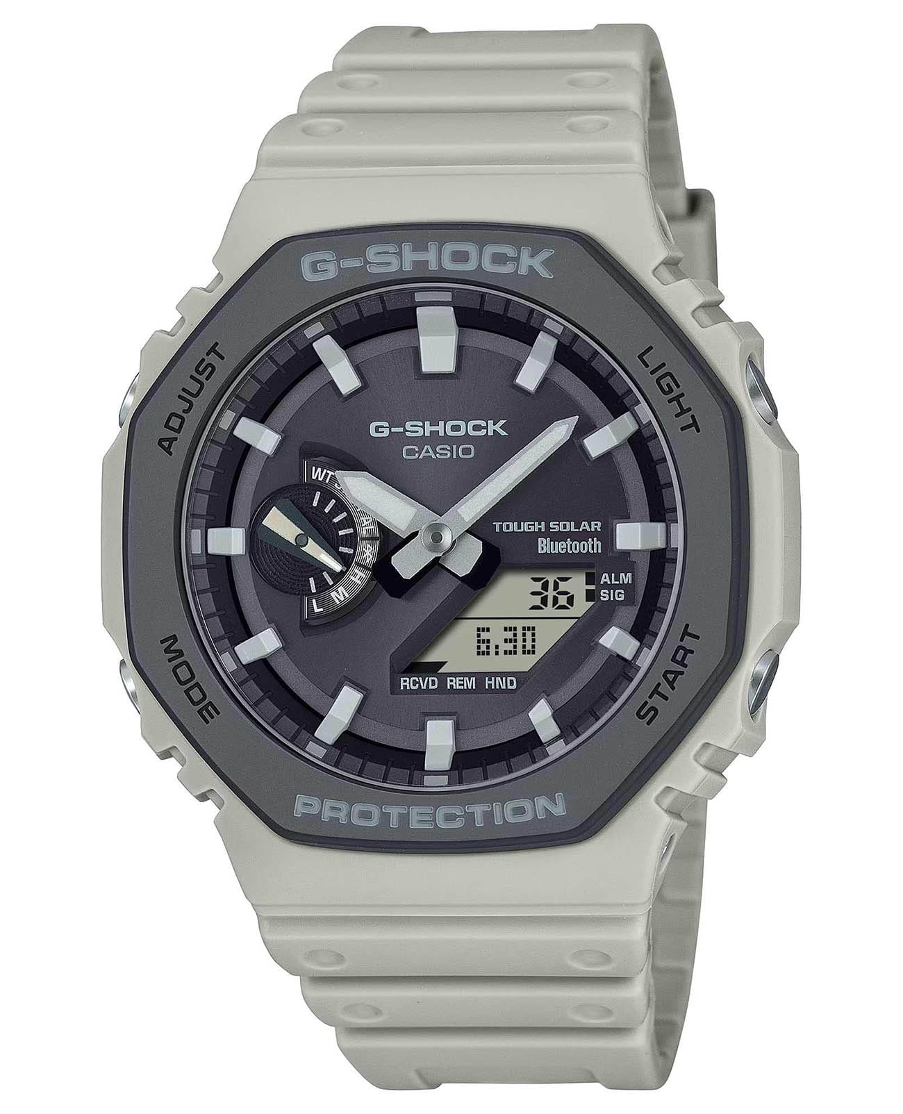 Японские мужские часы-хронографХронографФункция позволяет измерять отрезки времени с особой точностью: часы, минуты, секунды. Верным признаком хронографа является наличие на циферблате 3 дополнительных окошек-счётчиков. Casio G-Shock GA. Супер стильная обновленная расцветка в одном из самых популярных корпусов G-Shock последних лет. Харизматичная модель в матовом корпусе с контрастными стрелками из серии GA-B2100 сохранила внешний облик своих предшественников по серии GA-2100, но получила более технологичный модуль с блютус синхронизацией со смартфоном и Tough SolarTough SolarТехнология основана на подзарядке аккумулятора от источника солнечного света, специальная панель улавливает солнечные лучи и преобразует их в энергию для работы часов. Достаточно пары минут нахождения на солнце для функционирования часов в течении суток.. Минеральное стеклоМинеральное стеклоМинеральное стекло представляет собой искусственно выращенный минерал кварца. Такое стекло отличается особой устойчивостью к повреждениям и царапинам. Уступает по некоторым качествам сапфировому стеклу. устойчивое к появлению царапин, обладающее высокой прозрачностью. Ударопрочный корпусУдаропрочный корпусМеханизм заключён в корпус, выполненный из современных материалов, устойчивых к ударам, механическим повреждениям и падению с высоты: инновационный пластик, карбон, нержавеющая сталь, титан. Carbon Core GuardCarbon Core Guard Новейшая структура корпуса, разработанная Casio. Полиуретановая пластина дополнительно усилена карбоновыми вставками, что придаёт специальную защиту от механических повреждений. Карбон отличается лёгкостью и прочностью.. Светодиодная подсветкаСветодиодная подсветкаСветодиодная или LED-подсветка обеспечивает появление яркого холодного свечения за счёт LED-элементов - маленьких лампочек. Они потребляют минимальное количество энергии, чаще всего можно встретить 1 светодиод, в нижней части циферблата. освещает весь циферблат, после отпускания кнопки свечение продолжается еще некоторое время. Настраиваемое послесвечение 1,5 или 3сек. Мировое время Мировое время Полезное часовое усложнение, отображающее время в основных городах и известных областях по всему миру, оно связано с часовыми поясами, удобно для путешественников и бизнесменов. 38 городов (38 часовых поясов), всемирное координированное время UTCUTCВсемирное кординационное время, не имеющее привязки к географическому положению Гринвича, основывается на атомном отсчёте времени. Регулировка времени осуществляется более точно, чем устаревшее GMT.