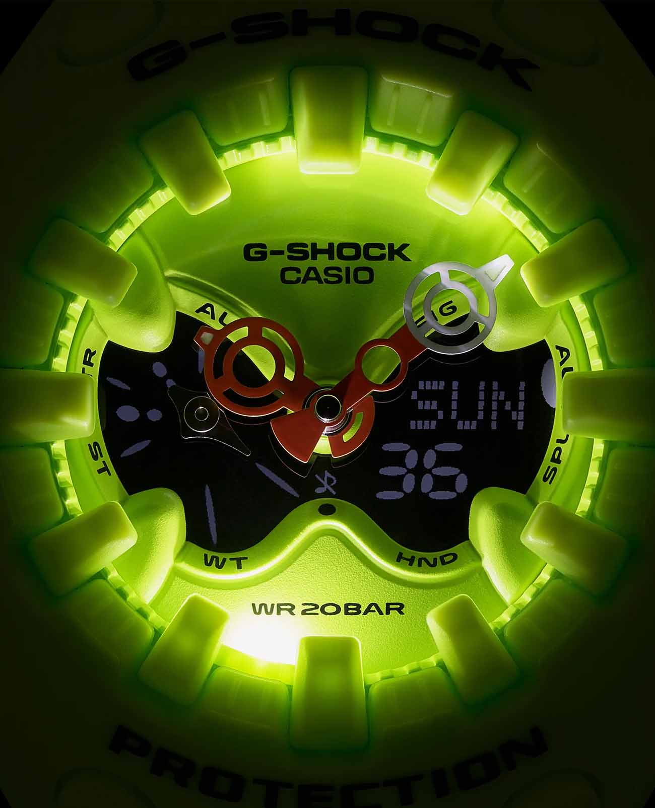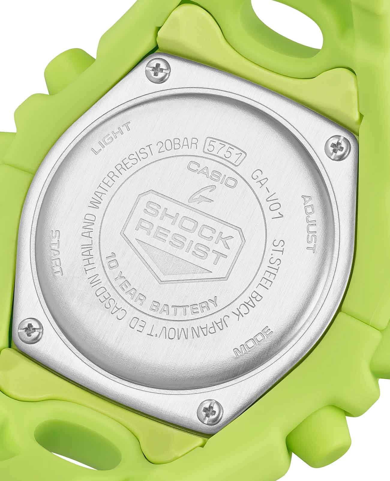 Мужские наручные часы Casio G-Shock GA-V01-9A — это яркое сочетание футуристического дизайна и передовых технологий. Модель выполнена в ударопрочном корпусеУдаропрочный корпусМеханизм заключён в корпус, выполненный из современных материалов, устойчивых к ударам, механическим повреждениям и падению с высоты: инновационный пластик, карбон, нержавеющая сталь, титан. из пластика и оснащена аналого-цифровым отображением времени, что делает их универсальными как для повседневной жизни, так и для активного образа жизни. Часы работают на кварцевом механизме, обеспечивающем точность хода и минимальное обслуживание. Батарейка рассчитана на 10 лет использования, что делает модель особенно экономичной и удобной в эксплуатации. Часы обладают водонепроницаемостью до WR200, позволяют плавать, нырять и заниматься другими водными видами спорта без опасений за сохранность механизма. Циферблат дополнен функцией мирового времени, окошком даты, а также возможностью переключения между 12-ти и 24-х часовым форматом времени. Присутствуют функции хронографа , секундомера с точностью 1/100 секунды, таймераТаймерОтсчитывает секунды в обратном направлении в заданном интервале времени. обратного отсчёта на 24 часа, пяти ежедневных будильниковБудильникБуди́льник — часы, в заданный момент времени подающие звуковой, световой и/или в редких случаях другой сигнал. и почасового сигнала. Также реализована функция временного перемещения стрелок, чтобы обеспечить беспрепятственный обзор цифровых показаний. Циферблат защищен прочным минеральным стекломМинеральное стеклоМинеральное стекло представляет собой искусственно выращенный минерал кварца. Такое стекло отличается особой устойчивостью к повреждениям и царапинам. Уступает по некоторым качествам сапфировому стеклу., а ремешок изготовлен из высококачественного полимерного материала, обеспечивающего комфорт при ношении.Светодиодная подсветкаСветодиодная подсветкаСветодиодная или LED-подсветка обеспечивает появление яркого холодного свечения за счёт LED-элементов - маленьких лампочек. Они потребляют минимальное количество энергии, чаще всего можно встретить 1 светодиод, в нижней части циферблата. освещает весь циферблат, после отпускания кнопки свечение продолжается еще некоторое время. Эта модель — настоящий прорыв в дизайне линейки G-Shock: футуристический внешний вид, вдохновлённый научной фантастикой, и богатый набор функций делают их не просто аксессуаром, а верным спутником в любом деле. Это идеальный выбор для тех, кто ценит стиль, надёжность и инновационные технологии.