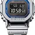 Перед вами супер-лимитированный релиз второй половины 2024 года от Casio! Легендарный олдскульный корпус GMW-B5000, облаченный в классическую сталь с яркой синей рамкой вокруг дисплея, окрашенной с помощью специальной технологии вакуумного лазерного напыления. Премиальные наручные часы серебристой расцветки, напоминающие ретро-модели от Casio, имеют противоударный корпусУдаропрочный корпусМеханизм заключён в корпус, выполненный из современных материалов, устойчивых к ударам, механическим повреждениям и падению с высоты: инновационный пластик, карбон, нержавеющая сталь, титан., благодаря безупречной полировке он выглядит хромированным. БезельБезельВнешний ободок, закрепляющий стекло. В спортивных часах так называется поворотное кольцо с делениями на циферблате, выполняет роль таймера – замеряет отрезки времени на шкале. Неподвижный безель – элемент декора. Однонаправленно вращающийся безель на дайверских часах позволяет фиксировать моменты погружения и выныривания на поверхность. имеет естественную стальную структуру. Слой материала Alpha Gel® обеспечивает дополнительную устойчивость к ударам и повреждениям, завинчивающаяся задняя крышка имеет защитное DLC-покрытиеDLC-покрытиеDiamond like carbon - одно из лучших видов покрытия, представляющее собой углерод с алмазными свойствами. На поверхность материала наносятся распавшиеся молекулы углерода, превращающиеся в плёнку из алмазоподобных связей, которая перенимает твёрдость алмаза.. Модель оснащена богатым функционалом: BluetoothBluetoothСовременная технология, позволяющая синхронизировать часы с телефоном и переносить данные. Часы с Bluetooth расширяют возможности вашего смартфона и делают его использование ещё более удобным., таймерТаймерОтсчитывает секунды в обратном направлении в заданном интервале времени., функция поиска телефона, UTCUTCВсемирное кординационное время, не имеющее привязки к географическому положению Гринвича, основывается на атомном отсчёте времени. Регулировка времени осуществляется более точно, чем устаревшее GMT.