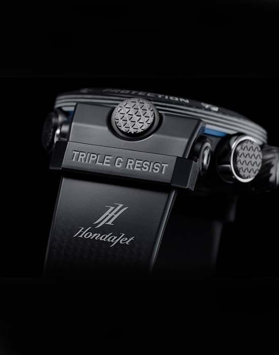 Указатель дня недели выполнен в виде самолёта Honda Jet. Задняя крышка здесь отсутствует, а противоударный корпусУдаропрочный корпусМеханизм заключён в корпус, выполненный из современных материалов, устойчивых к ударам, механическим повреждениям и падению с высоты: инновационный пластик, карбон, нержавеющая сталь, титан. сделан из монолитного углеродного монокока. Он сконструирован по технологии Carbon Core GuardCarbon Core Guard Новейшая структура корпуса, разработанная Casio. Полиуретановая пластина дополнительно усилена карбоновыми вставками, что придаёт специальную защиту от механических повреждений. Карбон отличается лёгкостью и прочностью., состоит из 52 слоёв карбона. Брендированный ремешок также усилен карбоновыми волокнами. Функции: BluetoothBluetoothСовременная технология, позволяющая синхронизировать часы с телефоном и переносить данные. Часы с Bluetooth расширяют возможности вашего смартфона и делают его использование ещё более удобным., будильник, мировое времяМировое время Полезное часовое усложнение, отображающее время в основных городах и известных областях по всему миру, оно связано с часовыми поясами, удобно для путешественников и бизнесменов. , секундомер, таймер, приём радиосигнала. Японский кварцевый механизм получает питание за счёт технологии .