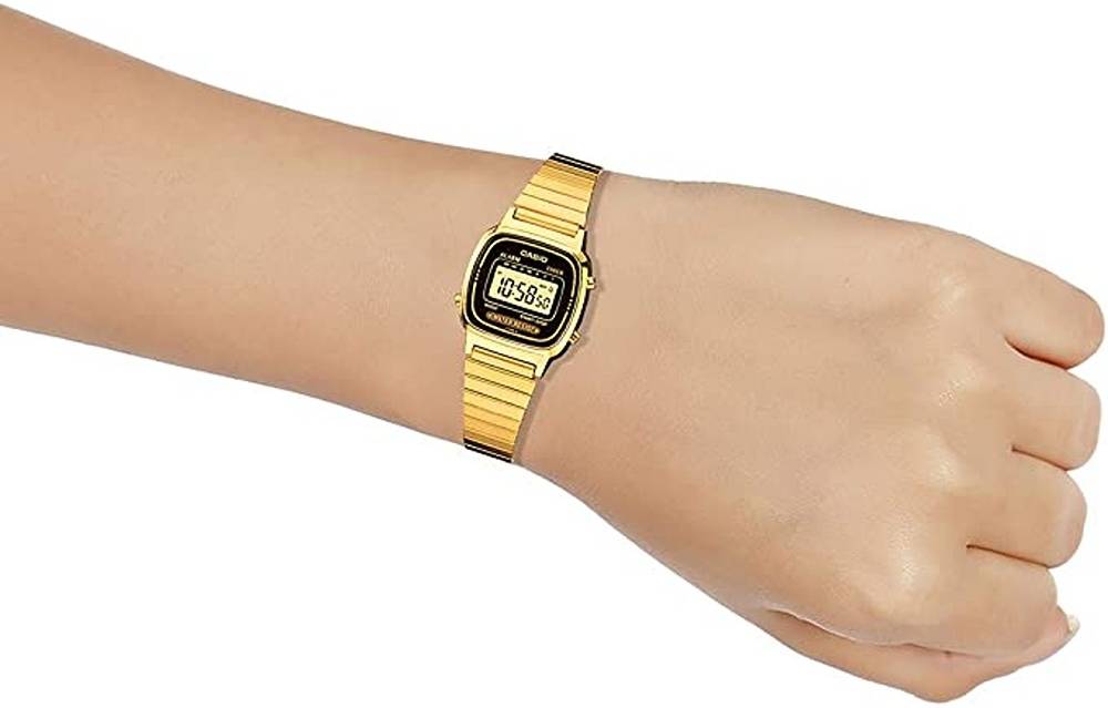 Женские часы на браслете в узнаваемом ретро-стиле LA670WGA-1D. СекундомерСекундомерСекундоме́р — прибор, способный измерять интервалы времени с точностью до долей секунды. с точностью показаний 1/10с и временем измерения 1ч. с таймеромТаймерОтсчитывает секунды в обратном направлении в заданном интервале времени. обратного отсчета с 7-ю предустановленными интервалами измерений: 1, 3, 5, 10, 15, 20 и 30 мин. Водонепроницаемость 30 метров, позволит защитить корпус от случайных брызг или капель дождя. Браслет с регулируемой застежкой.