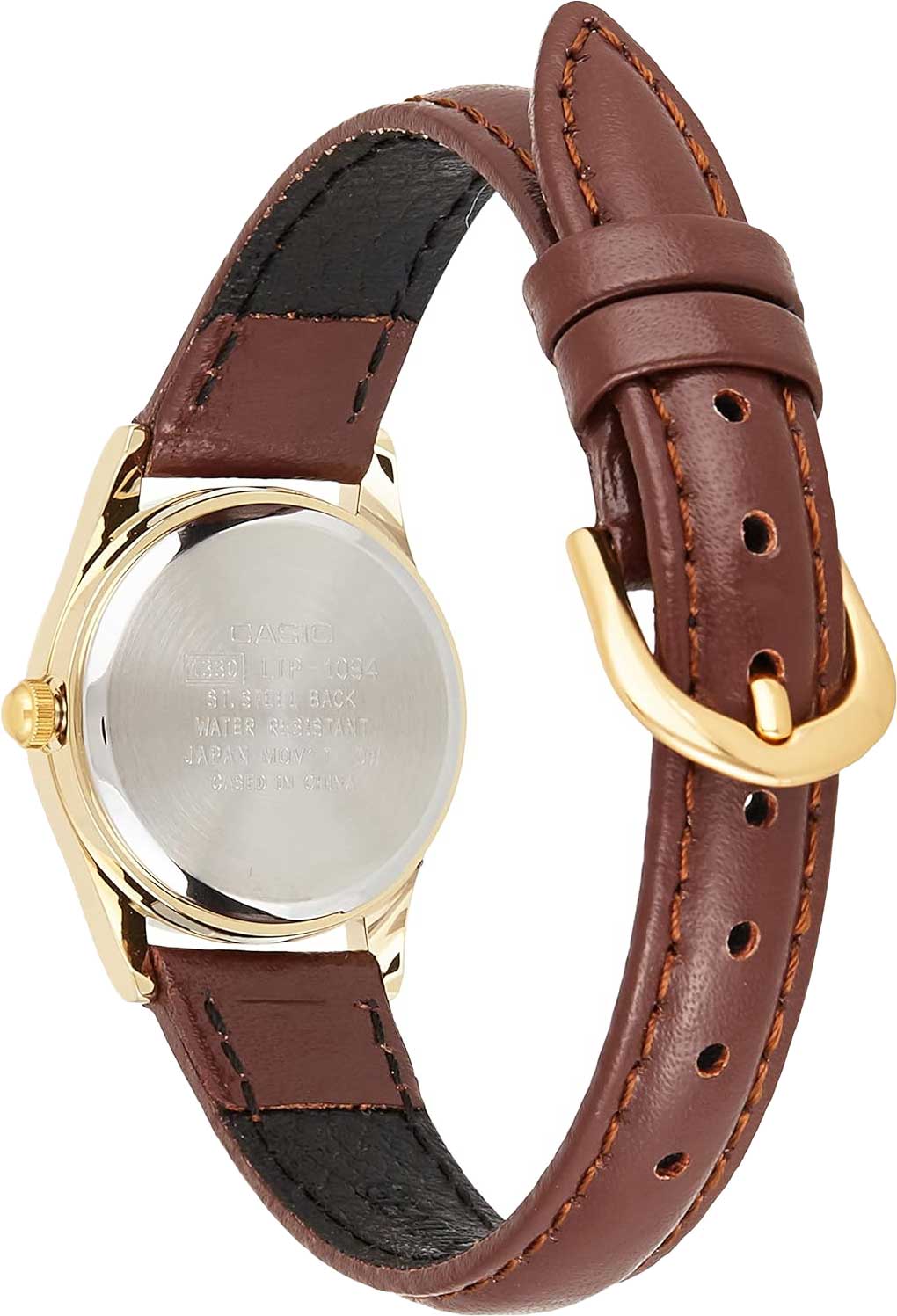 Японские женские часы Casio Collection LTP-1094Q-7B9R из коллекции LTP с минеральным стекломМинеральное стеклоМинеральное стекло представляет собой искусственно выращенный минерал кварца. Такое стекло отличается особой устойчивостью к повреждениям и царапинам. Уступает по некоторым качествам сапфировому стеклу. изящно смотрятся на запястье, они привлекают классическим исполнением и правильной геометрией. Минималистичная модель станет отличным решением для любого случая: на работу, переговоры с деловыми партнёрами, прогулку с друзьями или праздничный вечер. Отсутствуют лишние детали, что позволяет часам быть актуальными на долгие годы. Корпус выполнен из стали с IP-покрытиемIP-покрытиеМетод ионного напыления. Демонстрирует повышенную устойчивость к истиранию, окислению и химическим веществам. Под воздействием высокого давления и температуры около 1500°C молекулы металла надёжно соединяются с частицами корпуса часов..