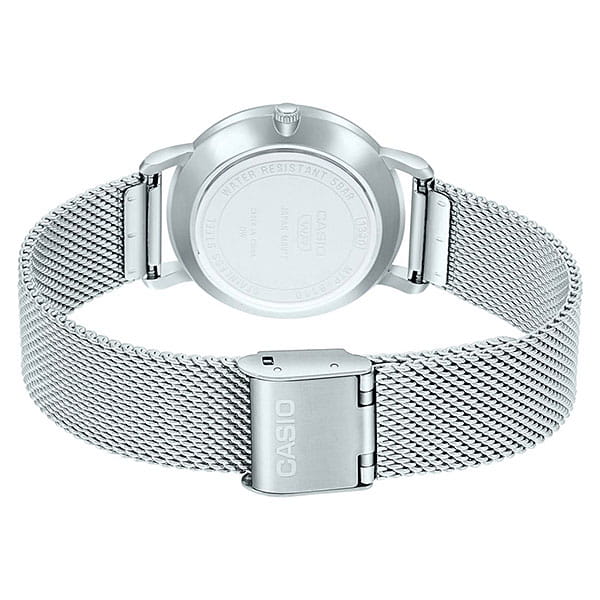 Японские мужские часы с минеральным стекломМинеральное стеклоМинеральное стекло представляет собой искусственно выращенный минерал кварца. Такое стекло отличается особой устойчивостью к повреждениям и царапинам. Уступает по некоторым качествам сапфировому стеклу. Casio Collection MTP-B110M-2A, кварцевый механизм с высокой точностью. Класс водозащиты: 50 метров, позволит защитить корпус от случайных брызг или капель дождя. Корпус и браслет часов изготовлены из стали. Браслет миланского плетения с раскладной застёжкойРаскладная застёжкаТакой тип застёжки используется только на браслетах из металла. Она никогда не раскрывается полностью, происходит разделение на 2 и более частей. Раскладывающая застёжка снизит вероятность потери часов к минимуму..