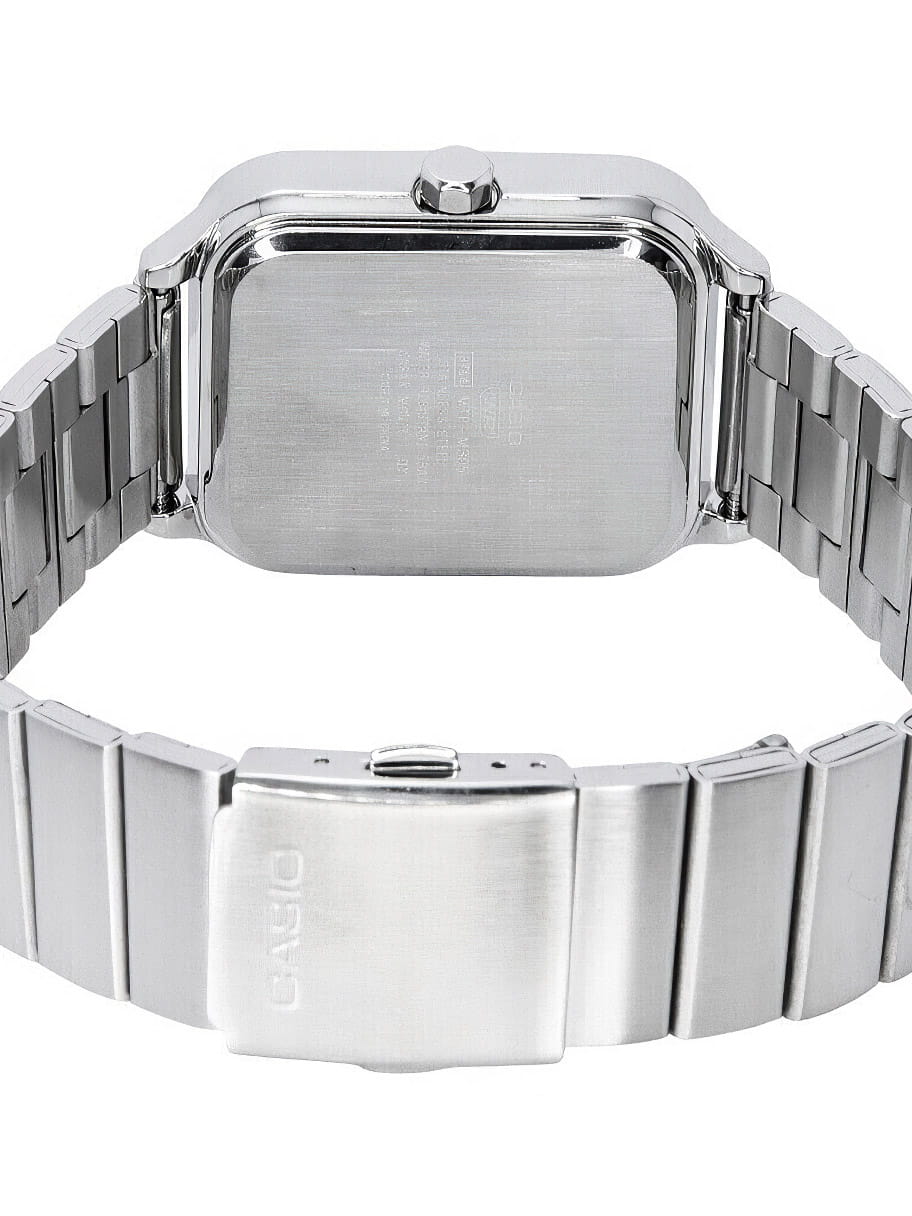 Японские мужские кварцевые часы с минеральным стекломМинеральное стеклоМинеральное стекло представляет собой искусственно выращенный минерал кварца. Такое стекло отличается особой устойчивостью к повреждениям и царапинам. Уступает по некоторым качествам сапфировому стеклу. Casio Collection MTP-M305D-6AVDF (MTP-M305D-6A), кварцевый механизм с высокой точностью. Корпус часов изготовлен из нержавеющей стали. Циферблат с метками в виде штрихов. Особенностью модели является наличие индикатора фазы луны над шестью часами по циферблату. Индикатор имеет 4 положения и отображается новолуние и полнолуние, а также растущую и убывающую Луну. Батарейка рассчитана на 3 года. Класс водозащиты: 50 метров, позволит защитить корпус от случайных брызг или капель дождя. Стальной браслет на раскладной застёжкеРаскладная застёжкаТакой тип застёжки используется только на браслетах из металла. Она никогда не раскрывается полностью, происходит разделение на 2 и более частей. Раскладывающая застёжка снизит вероятность потери часов к минимуму..