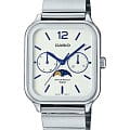 Японские мужские кварцевые часы с минеральным стекломМинеральное стеклоМинеральное стекло представляет собой искусственно выращенный минерал кварца. Такое стекло отличается особой устойчивостью к повреждениям и царапинам. Уступает по некоторым качествам сапфировому стеклу. Casio Collection MTP-M305D-7A, кварцевый механизм с высокой точностью. Корпус часов изготовлен из нержавеющей стали. Циферблат с метками в виде штрихов. Особенностью модели является наличие индикатора фазы луны над шестью часами по циферблату. Индикатор имеет 4 положения и отображается новолуние и полнолуние, а также растущую и убывающую Луну. Батарейка рассчитана на 3 года. Класс водозащиты: 50 метров, позволит защитить корпус от случайных брызг или капель дождя. Стальной браслет на раскладной застёжкеРаскладная застёжкаТакой тип застёжки используется только на браслетах из металла. Она никогда не раскрывается полностью, происходит разделение на 2 и более частей. Раскладывающая застёжка снизит вероятность потери часов к минимуму..