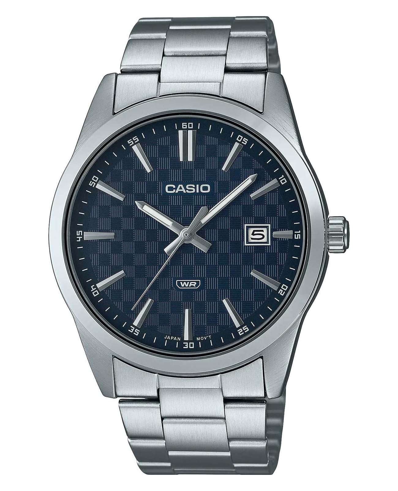 Японские мужские кварцевые часы с минеральным стекломМинеральное стеклоМинеральное стекло представляет собой искусственно выращенный минерал кварца. Такое стекло отличается особой устойчивостью к повреждениям и царапинам. Уступает по некоторым качествам сапфировому стеклу. Casio Collection MTP-VD03D-2A, кварцевый механизм с высокой точностью. Корпус часов изготовлен из нержавеющей стали. 12-ти и 24-х часовой формат времени. Циферблат с метками в виде штрихов. Стрелки с люминесцентным покрытиемЛюминесцентное покрытиеПозволяет считывать показания времени в темноте. Производители наносят на стрелки, часовые индексы, безель или поверхность циферблата светонакопительный состав, дающий холодное свечение.. Окошко даты находится в положении 3 часа. Батарея рассчитана на 3 года. Класс водозащиты: 50 метров, позволит защитить корпус от случайных брызг или капель дождя. Стальной браслет на раскладной застёжкеРаскладная застёжкаТакой тип застёжки используется только на браслетах из металла. Она никогда не раскрывается полностью, происходит разделение на 2 и более частей. Раскладывающая застёжка снизит вероятность потери часов к минимуму..