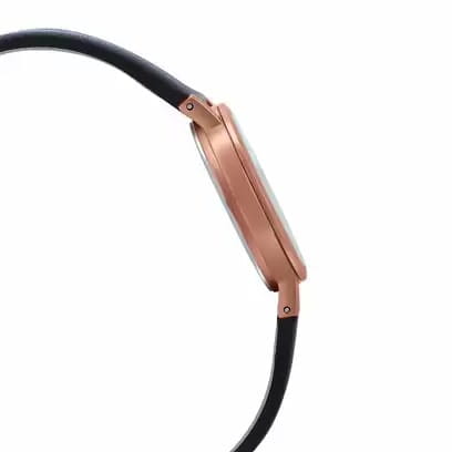 Тонкий кремешок из натуральной кожи стильно смотрится на запястье, брендовый аксессуар идеально сочетается как с повседневными джинсами, так и с вечерним платьем. Монокристал на отметке 7 часов. Кварцевый механизм обеспечивает безупречную точность хода. Прочный корпус с IP-покрытиемIP-покрытиеМетод ионного напыления. Демонстрирует повышенную устойчивость к истиранию, окислению и химическим веществам. Под воздействием высокого давления и температуры около 1500°C молекулы металла надёжно соединяются с частицами корпуса часов. розового золота. Сапфировое стеклоСапфировое стеклоПрочный и надёжный материал из кристалла сапфира синтетического происхождения, характеризующийся особой твёрдостью и устойчивостью к царапинам и повреждениям.. Апертура даты на отметке 6 часов. Габариты: 34x40,5мм х 6,4мм.