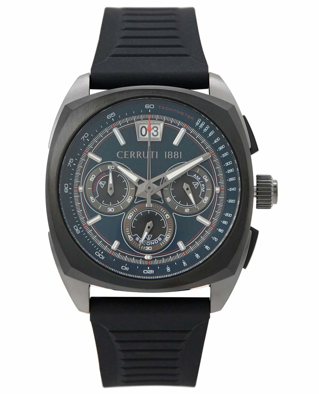 Мужские кварцевые часы Cerruti 1881 Cuneo CIWGO0085104 — спортивный аксессуар с французским дизайном и расширенным функционалом. Корпус из нержавеющей стали 316L с IP-покрытиемIP-покрытиеМетод ионного напыления. Демонстрирует повышенную устойчивость к истиранию, окислению и химическим веществам. Под воздействием высокого давления и температуры около 1500°C молекулы металла надёжно соединяются с частицами корпуса часов., размером 41.3 мм. Циферблат — синий с серыми элементами, с штриховыми метками и окошком даты в положении 12 часов. Стекло — минеральноеМинеральное стеклоМинеральное стекло представляет собой искусственно выращенный минерал кварца. Такое стекло отличается особой устойчивостью к повреждениям и царапинам. Уступает по некоторым качествам сапфировому стеклу. с сапфировым покрытием. Стрелки и метки с люминесцентным покрытиемЛюминесцентное покрытиеПозволяет считывать показания времени в темноте. Производители наносят на стрелки, часовые индексы, безель или поверхность циферблата светонакопительный состав, дающий холодное свечение.. Функции: хронографХронографФункция позволяет измерять отрезки времени с особой точностью: часы, минуты, секунды. Верным признаком хронографа является наличие на циферблате 3 дополнительных окошек-счётчиков., тахиметрТахиметрРазмеченная шкала, располагается на ободке или безеле часов. Тахиметр позволяет рассчитать скорость на определённом участке пути, расстояние измеряется в километрах или милях., секундомер. Ремешок — чёрный силиконовый на стандартной застёжке. Водонепроницаемость 100 м. Идеальный выбор для тех, кто ценит французский дизайн и спортивный стиль.