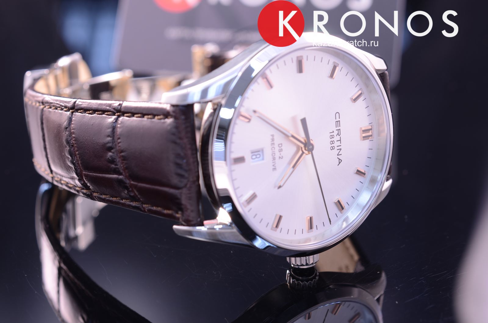 Узор «солнечные лучи», аккуратные накладные метки, изящные стрелки и лаконичные надписи – часы не имеют лишних элементов. Ремешок из натуральной телячьей кожи с тиснением «под аллигатора» останется актуальным в любые времена. Швейцарский кварцевый механизм ETA F06.411 Precidrive™Precidrive™Инновационный кварцевый механизм Certina. Часы, оснащённые этим швейцарским калибром, приравниваются к точности к сертифицированным хронометрам, точность хода составляет +/-10 секунд в год.. Удароустойчивый корпусУдаропрочный корпусМеханизм заключён в корпус, выполненный из современных материалов, устойчивых к ударам, механическим повреждениям и падению с высоты: инновационный пластик, карбон, нержавеющая сталь, титан. из хирургической стали. Люминесцентная подсветкаЛюминесцентное покрытиеПозволяет считывать показания времени в темноте. Производители наносят на стрелки, часовые индексы, безель или поверхность циферблата светонакопительный состав, дающий холодное свечение.. Концепция Double SecurityDS ConceptDouble Security Concept, обозначает двойную надёжность и безупречную точность часов Certina. Двойная система защиты подразумевает обеспечение максимальной устойчивости к ударам и высоких показателей водонепроницаемости.. Антибликовая обработка стекла из сапфира. Водонепроницаемость WR 100. . Апертура даты, функция EOLEOLПредставляет собой систему, уведомляющую владельца часов о необходимости замены элемента питания. За 2 недели до полного разряда батарейки секундная стрелка перестаёт ходить чётко и начинает перепрыгивать на 3-4 деления.. Диаметр корпуса: 40 мм.