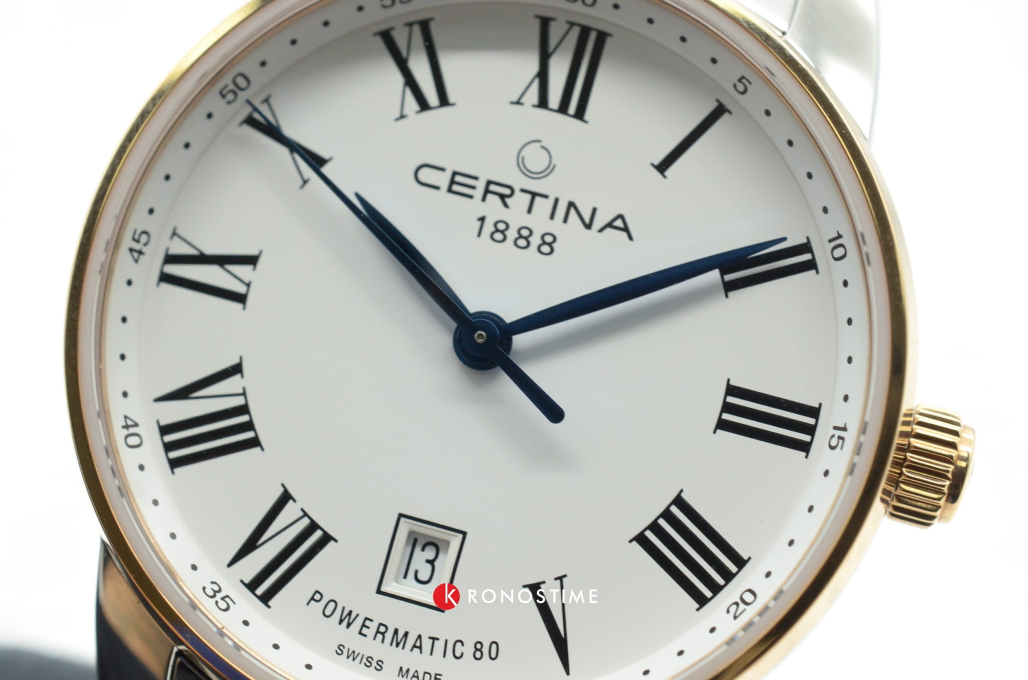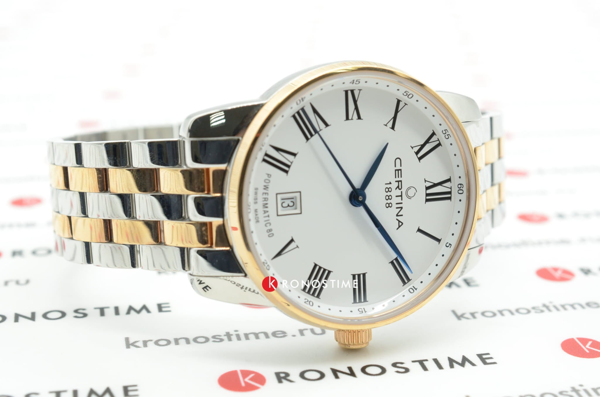 Элегантный стиль, широкий браслет, минималистичный циферблат, синие контрастные стрелки – модель выглядит ярко и в то же время строго. Это позволяет носить часы при любых обстоятельствах, Будь то повседневная прогулка или бизнес-встреча. Часы оснащены швейцарским автоматическим механизмом ETA Powermatic 80Powermatic 80Эксклюзивный калибр от швейцарской компании ETA с увеличенным запасом хода до 80 часов за счёт удлинённой заводной пружины. Характеризуется улучшенной системой спуска со сниженным трением. с увеличенным запасом хода до 80 часов. Циферблат дополнен сапфировым стеклом, антибликовое покрытие которого обеспечивает идеальную читаемость данных даже при ярком свете. Наручные часы отличаются ударопрочностью и водонепроницаемостью 100 метров благодаря фирменной концепции DS ConceptDS ConceptDouble Security Concept, обозначает двойную надёжность и безупречную точность часов Certina. Двойная система защиты подразумевает обеспечение максимальной устойчивости к ударам и высоких показателей водонепроницаемости.. Корпус и браслет сделаны из стали 316L с PVD-покрытиемPVDУльтратонкое покрытие наносится в технике вакуумного напыления, сочетает в себе нитрид титана особой прочности со слоем золота или оксида хрома. Несёт в себе декоративную или защитную функцию., материал долговечен и устойчив к коррозии. На метке 6 часов размещено окошко даты. Диаметр корпуса: 39 мм.