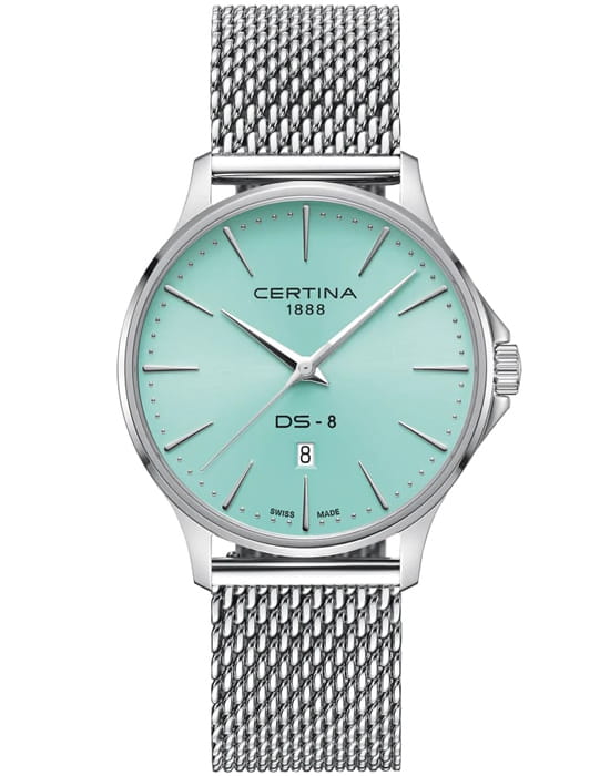 Швейцарские часы Certina DS-8 Gent C045.410.11.351.00 из коллекции DS-8 станут оригинальным дополнением повседневного образа. Сапфировое стеклоСапфировое стеклоПрочный и надёжный материал из кристалла сапфира синтетического происхождения, характеризующийся особой твёрдостью и устойчивостью к царапинам и повреждениям. с односторонним антибликовым покрытием. Соблюдение концепции DS Concept. Водостойкость 100 метров. Корпус из стали 316L с противокоррозионными свойствами. Браслет из нержавеющей стали. Функция EOL, отображение текущего числа. Стрелки с люминесцентным покрытиемЛюминесцентное покрытиеПозволяет считывать показания времени в темноте. Производители наносят на стрелки, часовые индексы, безель или поверхность циферблата светонакопительный состав, дающий холодное свечение.. Диаметр корпуса: 40 мм. Производство и сборка: Швейцария.