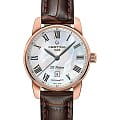 Женская модель, индикация часов, минут, секунд центральными стрелками. Окошко даты в положении 6 часов. Циферблат выполнен из натурального перламутра.