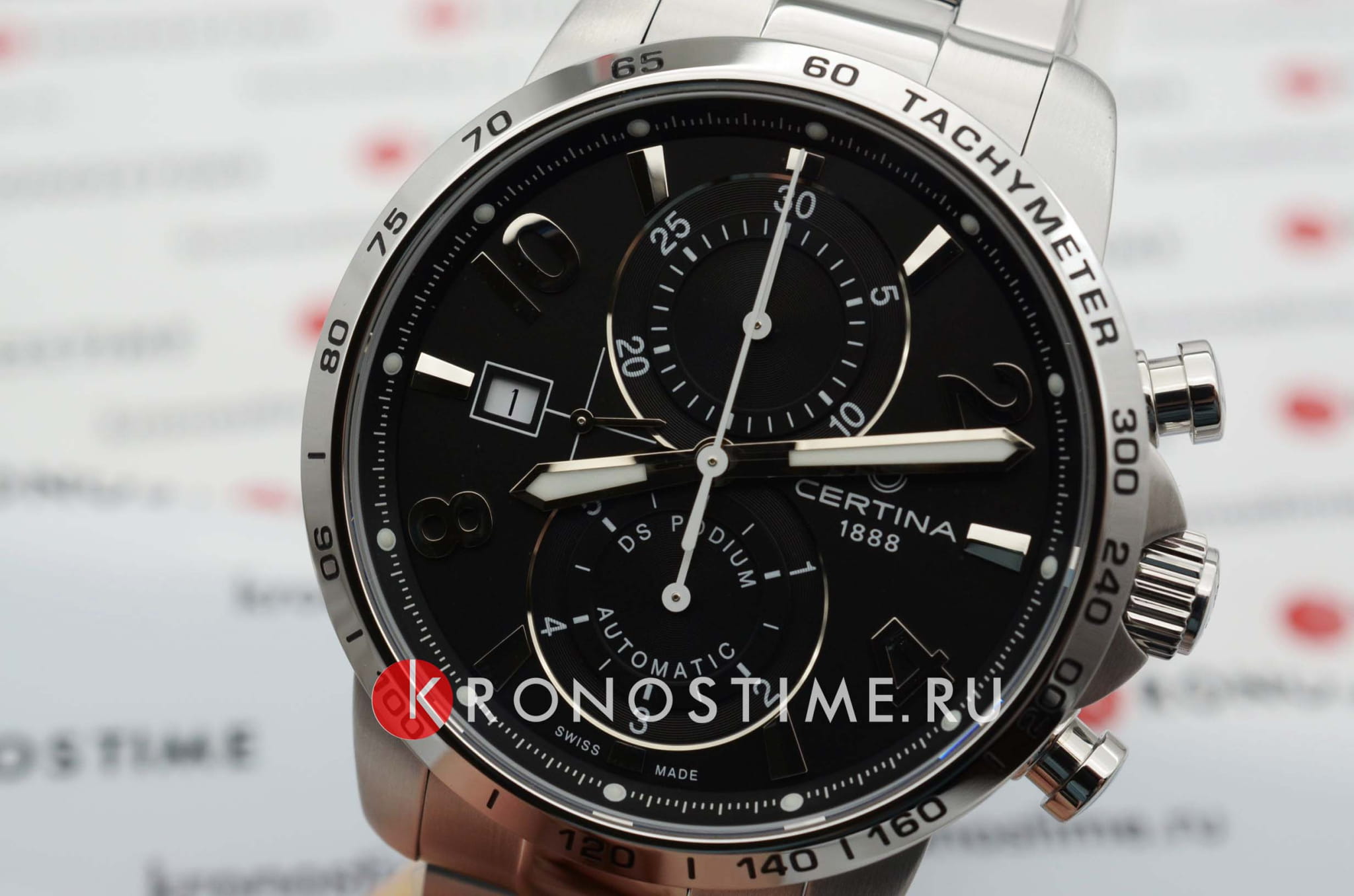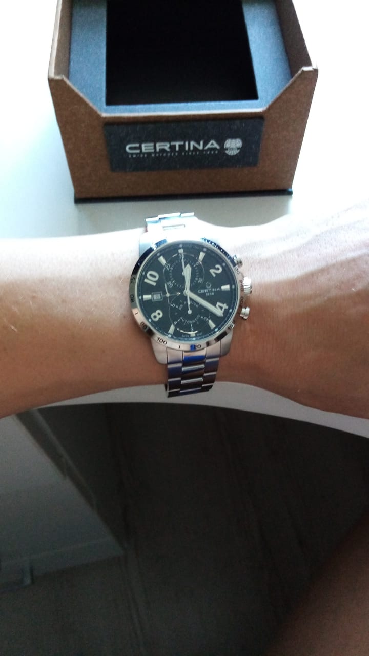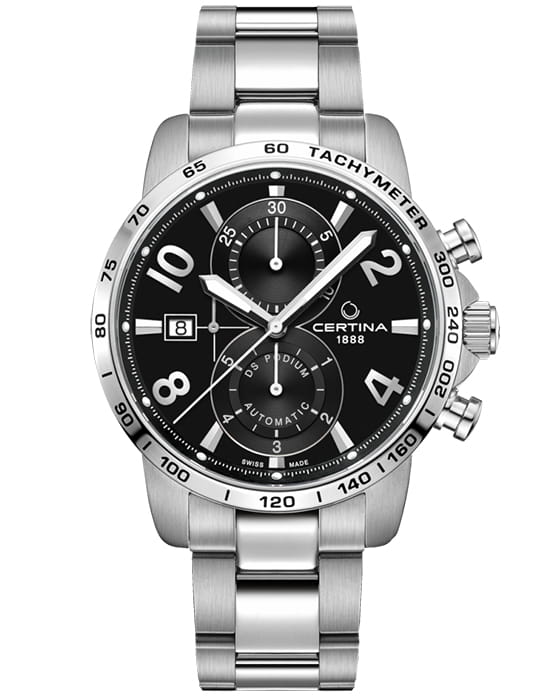 Наручные часы гармонично объединяет лаконичность чёрного циферблата и металлический блеск нержавеющей стали 316L. Спортивный аксессуар будет идеальным компаньоном для повседневного образа. Швейцарский механический калибр C01.211. Водонепроницаемость до 10 бар. Реализация концепции DS ConceptDS ConceptDouble Security Concept, обозначает двойную надёжность и безупречную точность часов Certina. Двойная система защиты подразумевает обеспечение максимальной устойчивости к ударам и высоких показателей водонепроницаемости.. Антибликовая обработка для сапфирового стекла. Люминесцентная подсветкаЛюминесцентное покрытиеПозволяет считывать показания времени в темноте. Производители наносят на стрелки, часовые индексы, безель или поверхность циферблата светонакопительный состав, дающий холодное свечение.. Заводная головка с защитой. Ударопрочный корпусУдаропрочный корпусМеханизм заключён в корпус, выполненный из современных материалов, устойчивых к ударам, механическим повреждениям и падению с высоты: инновационный пластик, карбон, нержавеющая сталь, титан.. Предохранительная . Окошко даты, шкала тахиметраТахиметрРазмеченная шкала, располагается на ободке или безеле часов. Тахиметр позволяет рассчитать скорость на определённом участке пути, расстояние измеряется в километрах или милях., секундомер, хронографХронографФункция позволяет измерять отрезки времени с особой точностью: часы, минуты, секунды. Верным признаком хронографа является наличие на циферблате 3 дополнительных окошек-счётчиков.. Диаметр корпуса: 41 мм.