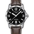 Дизайн аксессуара с чёрным циферблатом тщательно продуман, спортивное оформление перекликается с элементами лаконичной классики. Благодаря крупной индикации времени обеспечивается превосходная читаемость циферблата даже при мимолётном взгляде на запястье. Наручные часы отображают время с хронометрической точностью, что подтверждается официальным сертификатом COSCСертификат COSCОфициальный сертификат, подтверждающий то, что часы ходят с особо высокой точностью. Для получения документа часы подвергаются тестовым испытаниям, разработанным швейцарским институтом тестирования хронометров COSC. Допустимая норма для механических часов -4/+6 секунд в день, для кварцевых моделей +/- 0,07 секунд в день.. Швейцарский кварцевый калибр ETA F07.412 Precidrive™Precidrive™Инновационный кварцевый механизм Certina. Часы, оснащённые этим швейцарским калибром, приравниваются к точности к сертифицированным хронометрам, точность хода составляет +/-10 секунд в год.. Ударопрочный корпусУдаропрочный корпусМеханизм заключён в корпус, выполненный из современных материалов, устойчивых к ударам, механическим повреждениям и падению с высоты: инновационный пластик, карбон, нержавеющая сталь, титан. и браслет из нержавеющей стали 316L. DS ConceptDS ConceptDouble Security Concept, обозначает двойную надёжность и безупречную точность часов Certina. Двойная система защиты подразумевает обеспечение максимальной устойчивости к ударам и высоких показателей водонепроницаемости.. Заводная головка с системой защиты. Водостойкость 10 бар. Люминесцентная подсветкаЛюминесцентное покрытиеПозволяет считывать показания времени в темноте. Производители наносят на стрелки, часовые индексы, безель или поверхность циферблата светонакопительный состав, дающий холодное свечение.. Апертура даты. . Индикатор EOLEOLПредставляет собой систему, уведомляющую владельца часов о необходимости замены элемента питания. За 2 недели до полного разряда батарейки секундная стрелка перестаёт ходить чётко и начинает перепрыгивать на 3-4 деления.. Диаметр корпуса: 40 мм.