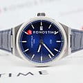 Глубокий синий циферблат дополнен люминесцентными стрелками и метками с покрытием Super-LumiNova®, что обеспечивает удобство использования даже в условиях низкой освещённости. Окошко даты расположено на отметке «3 часа», добавляя практичности.