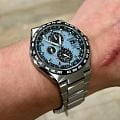 Японские наручные часы Citizen AT8238-84M сочетают в себе передовые технологии, надежность и стильный современный дизайн. Корпус и браслет выполнены из высокопрочного материала Super Titanium, который в пять раз тверже и на 40% легче стали, а также отличается высокой устойчивостью к царапинам и коррозии, а на безельБезельВнешний ободок, закрепляющий стекло. В спортивных часах так называется поворотное кольцо с делениями на циферблате, выполняет роль таймера – замеряет отрезки времени на шкале. Неподвижный безель – элемент декора. Однонаправленно вращающийся безель на дайверских часах позволяет фиксировать моменты погружения и выныривания на поверхность. нанесено черное IP-покрытиеIP-покрытиеМетод ионного напыления. Демонстрирует повышенную устойчивость к истиранию, окислению и химическим веществам. Под воздействием высокого давления и температуры около 1500°C молекулы металла надёжно соединяются с частицами корпуса часов.. Диаметр корпуса составляет 43,5 мм, толщина — 10 мм, а вес — всего 90 грамм, что обеспечивает легкость и комфорт при ежедневном ношении. Часы оснащены кварцевым хронографомХронографФункция позволяет измерять отрезки времени с особой точностью: часы, минуты, секунды. Верным признаком хронографа является наличие на циферблате 3 дополнительных окошек-счётчиков. на солнечной батарее с системой Eco-Drive, не требующей замены батарейки, и калибром Citizen H800, обеспечивающим до 6 месяцев работы без подзарядки и защиту от перезаряда. Особенностью модели является автоматическая синхронизация времени по радиосигналу в четырех регионах мира, охватывающая 26 часовых зон, а также функция мирового времениМировое время Полезное часовое усложнение, отображающее время в основных городах и известных областях по всему миру, оно связано с часовыми поясами, удобно для путешественников и бизнесменов. и вечного календаряВечный календарьКлассическое часовое усложнение, представляющее собой календарь, рассчитанный на несколько лет вперёд (стандартно – до 2099 года). Определяет текущую дату, день недели, месяц., рассчитанного до 2100 года. На голубом циферблате расположены центральные часовая и минутная стрелки с люминесцентным покрытиемЛюминесцентное покрытиеПозволяет считывать показания времени в темноте. Производители наносят на стрелки, часовые индексы, безель или поверхность циферблата светонакопительный состав, дающий холодное свечение. для отличной читаемости в темноте, а также апертура даты в позиции 3 часов и отдельный малый циферблат для секундной стрелки. Часы поддерживают 12/24-часовой формат времени, оснащены секундомеромСекундомерСекундоме́р — прибор, способный измерять интервалы времени с точностью до долей секунды. с точностью 1/20 секунды и максимальным временем измерения 60 минут, а также индикатором окончания ресурса элемента питания EOLEOLПредставляет собой систему, уведомляющую владельца часов о необходимости замены элемента питания. За 2 недели до полного разряда батарейки секундная стрелка перестаёт ходить чётко и начинает перепрыгивать на 3-4 деления.. Устойчивое к царапинам сапфировое стеклоСапфировое стеклоПрочный и надёжный материал из кристалла сапфира синтетического происхождения, характеризующийся особой твёрдостью и устойчивостью к царапинам и повреждениям. с антибликовым покрытиемАнтибликовое покрыти