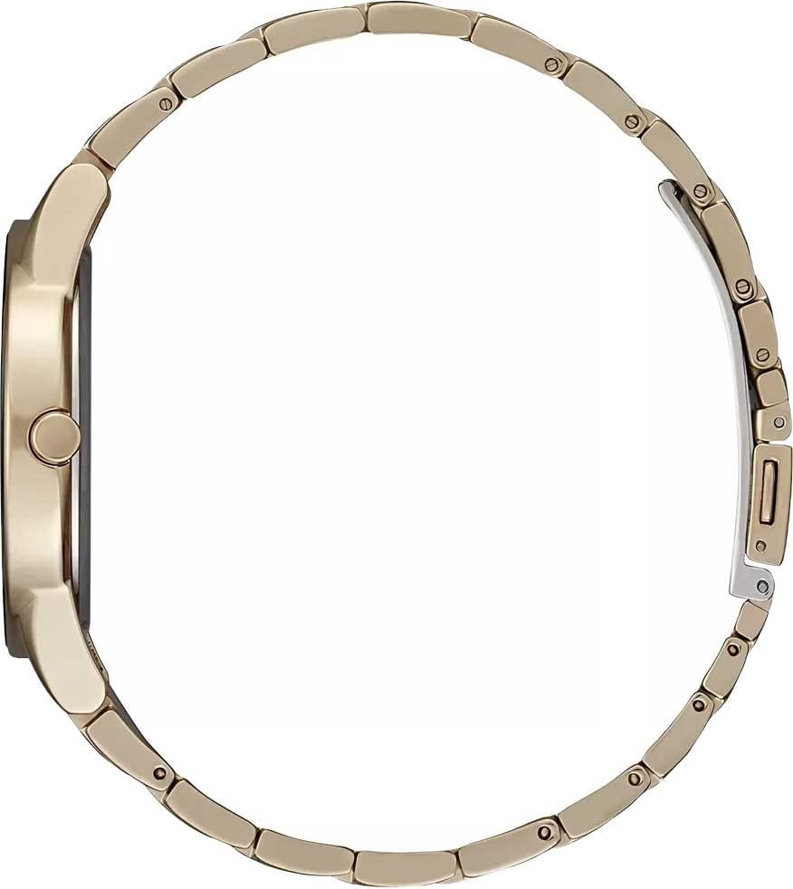 Часы Citizen AU1066-80L представлены в строгом и элегантном дизайне, идеально подходящем для делового стиля. Корпус и браслет выполнены из высококачественной нержавеющей стали с износостойким золотистым IP-покрытиемIP-покрытиеМетод ионного напыления. Демонстрирует повышенную устойчивость к истиранию, окислению и химическим веществам. Под воздействием высокого давления и температуры около 1500°C молекулы металла надёжно соединяются с частицами корпуса часов., что обеспечивает долговечность и презентабельный внешний вид. Синий циферблат с минималистичным оформлением подчеркивает сдержанность модели, а окошко даты удобно расположено в положении 3 часа. Надежный кварцевый механизм Citizen J165 работает на инновационной системе Eco-Drive, которая питается от солнечной энергии и не требует замены батарейки, обеспечивая запас хода до 270 дней. Часы оснащены функцией индикации заряда EOLEOLПредставляет собой систему, уведомляющую владельца часов о необходимости замены элемента питания. За 2 недели до полного разряда батарейки секундная стрелка перестаёт ходить чётко и начинает перепрыгивать на 3-4 деления. и защитой от перезаряда. Минеральное стеклоМинеральное стеклоМинеральное стекло представляет собой искусственно выращенный минерал кварца. Такое стекло отличается особой устойчивостью к повреждениям и царапинам. Уступает по некоторым качествам сапфировому стеклу. надежно защищает циферблат от случайных повреждений, а водозащита уровня WR30 позволяет не снимать часы при случайном контакте с водой. Диаметр корпуса составляет 40 мм, что делает модель универсальным аксессуаром для любого случая. Раскладная застёжкаРаскладная застёжкаТакой тип застёжки используется только на браслетах из металла. Она никогда не раскрывается полностью, происходит разделение на 2 и более частей. Раскладывающая застёжка снизит вероятность потери часов к минимуму. на браслете обеспечивает дополнительный комфорт при носке.