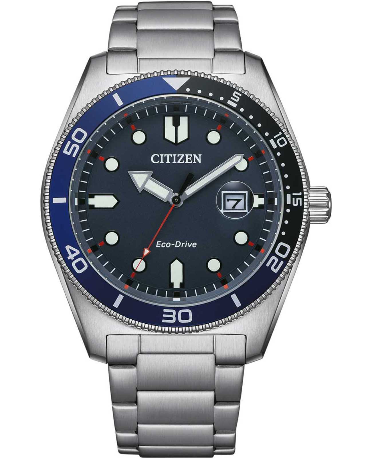 Часы Citizen AW1761-89L произведены в Японии и представляют собой гармоничное сочетание спортивного стиля и современных технологий. Модель оснащена кварцевым механизмом с калибром Citizen J810 и уникальной системой Eco-Drive Aqua Matic, которая позволяет заряжать часы от солнечного света и не требует замены батарейки, обеспечивая запас хода до 240 дней. Прочный корпус диаметром 43 мм выполнен из нержавеющей стали, а на вращающийся безельБезельВнешний ободок, закрепляющий стекло. В спортивных часах так называется поворотное кольцо с делениями на циферблате, выполняет роль таймера – замеряет отрезки времени на шкале. Неподвижный безель – элемент декора. Однонаправленно вращающийся безель на дайверских часах позволяет фиксировать моменты погружения и выныривания на поверхность. нанесено синее и черное IP-покрытиеIP-покрытиеМетод ионного напыления. Демонстрирует повышенную устойчивость к истиранию, окислению и химическим веществам. Под воздействием высокого давления и температуры около 1500°C молекулы металла надёжно соединяются с частицами корпуса часов., что придает модели выразительный внешний вид и надежную защиту от внешних воздействий. Эффектный синий циферблат оформлен метками в виде штрихов и точек, а также оснащен стрелками и метками с люминесцентным покрытиемЛюминесцентное покрытиеПозволяет считывать показания времени в темноте. Производители наносят на стрелки, часовые индексы, безель или поверхность циферблата светонакопительный состав, дающий холодное свечение. для удобства считывания времени даже в темноте. Окошко даты с увеличительным стеклом расположено на циферблате, что делает показания особенно читаемыми. выпуклое минеральное стеклоМинеральное стеклоМинеральное стекло представляет собой искусственно выращенный минерал кварца. Такое стекло отличается особой устойчивостью к повреждениям и царапинам. Уступает по некоторым качествам сапфировому стеклу. защищает часы от случайных повреждений, а водозащита 100WR позволяет использовать их в повседневной жизни и во время активного отдыха. Удобный стальной браслет с раскладной застёжкойРаскладная застёжкаТакой тип застёжки используется только на браслетах из металла. Она никогда не раскрывается полностью, происходит разделение на 2 и более частей. Раскладывающая застёжка снизит вероятность потери часов к минимуму. обеспечивает комфортное ношение и надежную фиксацию на запястье. Толщина корпуса составляет 11,7 мм, что делает часы практичным и стильным аксессуаром для каждого дня.
