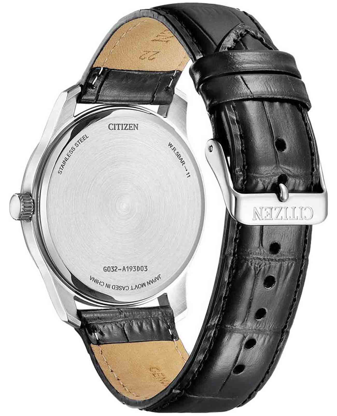 Часы Citizen BH5001-05H сочетают в себе японское качество, современный дизайн и надежность кварцевого механизма Citizen G032. Круглый корпус диаметром 42 мм выполнен из прочной нержавеющей стали, что обеспечивает долговечность и стильный внешний вид. Черный циферблат украшен метками в виде штрихов и выполнен по технологии Sunray, создающей эффект солнечных лучей при попадании света. Минеральное стеклоМинеральное стеклоМинеральное стекло представляет собой искусственно выращенный минерал кварца. Такое стекло отличается особой устойчивостью к повреждениям и царапинам. Уступает по некоторым качествам сапфировому стеклу. защищает циферблат от царапин и повреждений. Рифленая заводная головка подчеркивает элегантность и практичность модели. Кожаный ремешок шириной 22 мм с классической застежкой обеспечивает комфортное ношение и подходит для любого случая. Водозащита до 50 метров позволяет не бояться случайных брызг и дождя.