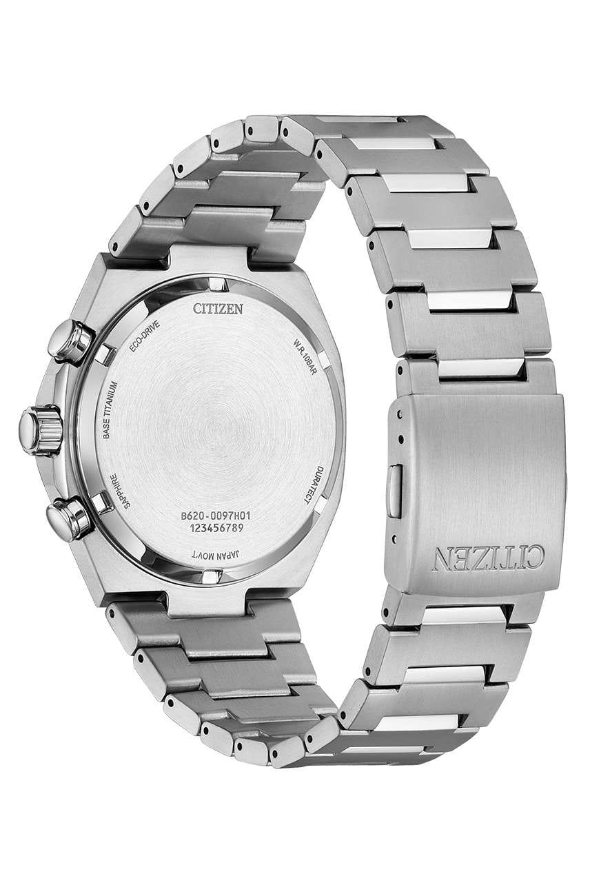 Citizen CA4610-85X — это стильные мужские кварцевые часы с функцией хронографаХронографФункция позволяет измерять отрезки времени с особой точностью: часы, минуты, секунды. Верным признаком хронографа является наличие на циферблате 3 дополнительных окошек-счётчиков., сочетающие передовые технологии и современный дизайн. Корпус и браслет выполнены из сверхлегкого и прочного титана, что обеспечивает комфортное ношение и высокую износостойкость. Зеленый круглый циферблат защищён устойчивым к царапинам сапфировым стекломСапфировое стеклоПрочный и надёжный материал из кристалла сапфира синтетического происхождения, характеризующийся особой твёрдостью и устойчивостью к царапинам и повреждениям.. Часы работают на инновационной системе Eco-Drive, питание которой осуществляется от солнечной энергии, что позволяет отказаться от замены батарейки, а запас хода достигает 9 месяцев. Стрелки с люминесцентным покрытиемЛюминесцентное покрытиеПозволяет считывать показания времени в темноте. Производители наносят на стрелки, часовые индексы, безель или поверхность циферблата светонакопительный состав, дающий холодное свечение. обеспечивают отличную читаемость времени даже в темное время суток. Для удобства предусмотрены функция предотвращения перезарядки и индикация уровня заряда EOLEOLПредставляет собой систему, уведомляющую владельца часов о необходимости замены элемента питания. За 2 недели до полного разряда батарейки секундная стрелка перестаёт ходить чётко и начинает перепрыгивать на 3-4 деления.. Надёжный японский механизм Citizen B620 обеспечивает точный ход, а центральные часовая и минутная стрелки, вынесенная на отдельный малый циферблат секундная стрелка и апертура даты между 4 и 5 часами делают использование максимально удобным. Модель поддерживает 12- и 24-часовой формат времени, а также оснащена секундомером для точного измерения промежутков. Диаметр корпуса составляет 42,5 мм, толщина — 11,6 мм, вес — около 101 грамма. Водозащита уровня WR 100 позволяет не снимать часы во время плавания без глубокого погружения. Раскладная застёжкаРаскладная застёжкаТакой тип застёжки используется только на браслетах из металла. Она никогда не раскрывается полностью, происходит разделение на 2 и более частей. Раскладывающая застёжка снизит вероятность потери часов к минимуму. на браслете обеспечивает надежную фиксацию на запястье. Модель оснащена хронографомХронографФункция позволяет измерять отрезки времени с особой точностью: часы, минуты, секунды. Верным признаком хронографа является наличие на циферблате 3 дополнительных окошек-счётчиков. с секундомеромСекундомерСекундоме́р — прибор, способный измерять интервалы времени с точностью до долей секунды. и тахиметромТахиметрРазмеченная шкала, располагается на ободке или безеле часов. Тахиметр позволяет рассчитать скорость на определённом участке пути, расстояние измеряется в километрах или милях..