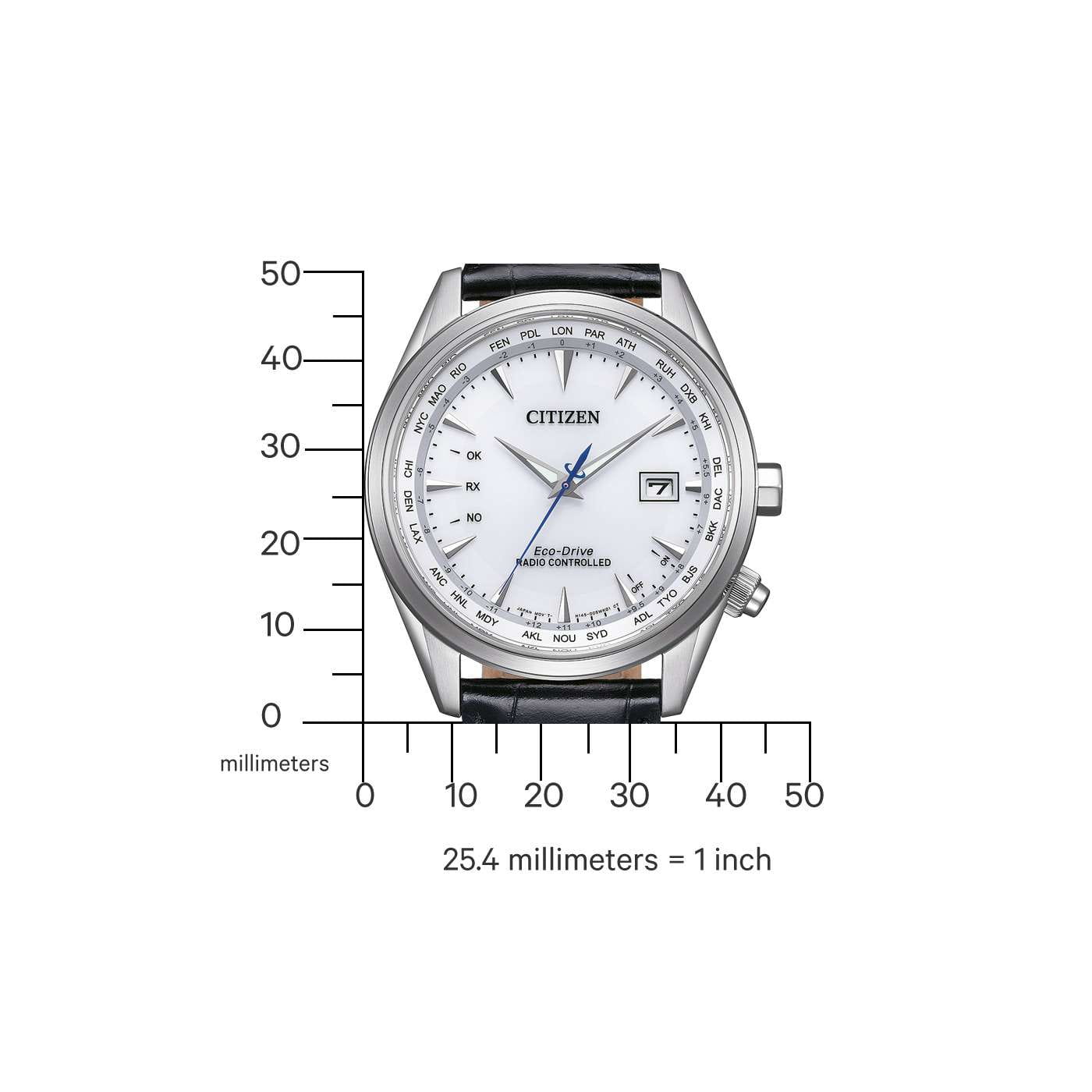 Citizen CB0270-10A — это высокоточные японские часы с современным кварцевым механизмом Citizen H145 и инновационной системой Eco-Drive, работающей от солнечной энергии и не требующей замены батарейки. Запас хода составляет до 180 дней без подзарядки, предусмотрены функции индикации уровня заряда, предотвращения перезарядки и энергосбережения. Корпус выполнен из прочной нержавеющей стали, диаметр корпуса — 43 мм, толщина — 10 мм, ширина ремешка — 22 мм. Защита от воды до 100WR позволяет использовать часы во время плавания. Сапфировое стеклоСапфировое стеклоПрочный и надёжный материал из кристалла сапфира синтетического происхождения, характеризующийся особой твёрдостью и устойчивостью к царапинам и повреждениям. защищает белый циферблат с вечным календарём и отображением числа, окошко даты расположено на отметке 3 часа. Часы автоматически принимают радиосигналы времени с вышек в Европе, США, Японии и Китае, обеспечивая максимально точное время и автоматический переход на летнее и зимнее время с возможностью отключения этой функции. Стрелки с люминесцентным покрытиемЛюминесцентное покрытиеПозволяет считывать показания времени в темноте. Производители наносят на стрелки, часовые индексы, безель или поверхность циферблата светонакопительный состав, дающий холодное свечение. обеспечивают отличную читаемость времени даже в темное время суток. Также поддерживается мировое времяМировое время Полезное часовое усложнение, отображающее время в основных городах и известных областях по всему миру, оно связано с часовыми поясами, удобно для путешественников и бизнесменов. для 26 городов. Синий кожанный оборудован удобной застежкой «бабочка»Застёжка "бабочка"Такой вид застёжки дополняется предохранителями, помогающими избежать случайного раскрытия браслета. Обладают изящным исполнением. .