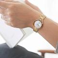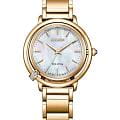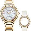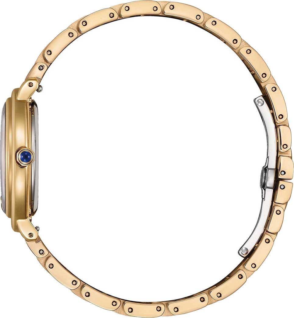 Часы Citizen EM1093-61D – это элегантная модель, созданная в Японии и сочетающая в себе современные технологии и изысканный дизайн. Надежный кварцевый механизм Citizen E031 с инновационной системой Eco-Drive работает от солнечной энергии и не требует замены батарейки, обеспечивая запас хода до 180 дней. Корпус и браслет часов выполнены из нержавеющей стали с золотым IP-покрытиемIP-покрытиеМетод ионного напыления. Демонстрирует повышенную устойчивость к истиранию, окислению и химическим веществам. Под воздействием высокого давления и температуры около 1500°C молекулы металла надёжно соединяются с частицами корпуса часов. и украшен тремя кристаллами, что придает аксессуару особое сияние. Перламутровый голубой циферблат с лаконичными метками защищен выпуклым сапфировым стекломСапфировое стеклоПрочный и надёжный материал из кристалла сапфира синтетического происхождения, характеризующийся особой твёрдостью и устойчивостью к царапинам и повреждениям., устойчивым к царапинам. Заводная головка декорирована камнем в форме кабошона, а задняя крышка закреплена на четырех винтах. Стальной браслет оснащен застежкой «бабочка»Застёжка "бабочка"Такой вид застёжки дополняется предохранителями, помогающими избежать случайного раскрытия браслета. Обладают изящным исполнением. и системой быстрой замены, что позволяет легко менять стиль часов в зависимости от вашего настроения. В комплекте также идет сменный белый ремешок с такой же застежкой. Водозащита 50WR позволяет не беспокоиться о случайном контакте с водой. Компактные размеры корпуса (диаметр 31,2 мм, толщина 7,8 мм, вес 71 г) обеспечивают комфортное ношение каждый день. Эти часы станут великолепным дополнением к любому образу и подчеркнут вашу индивидуальность.