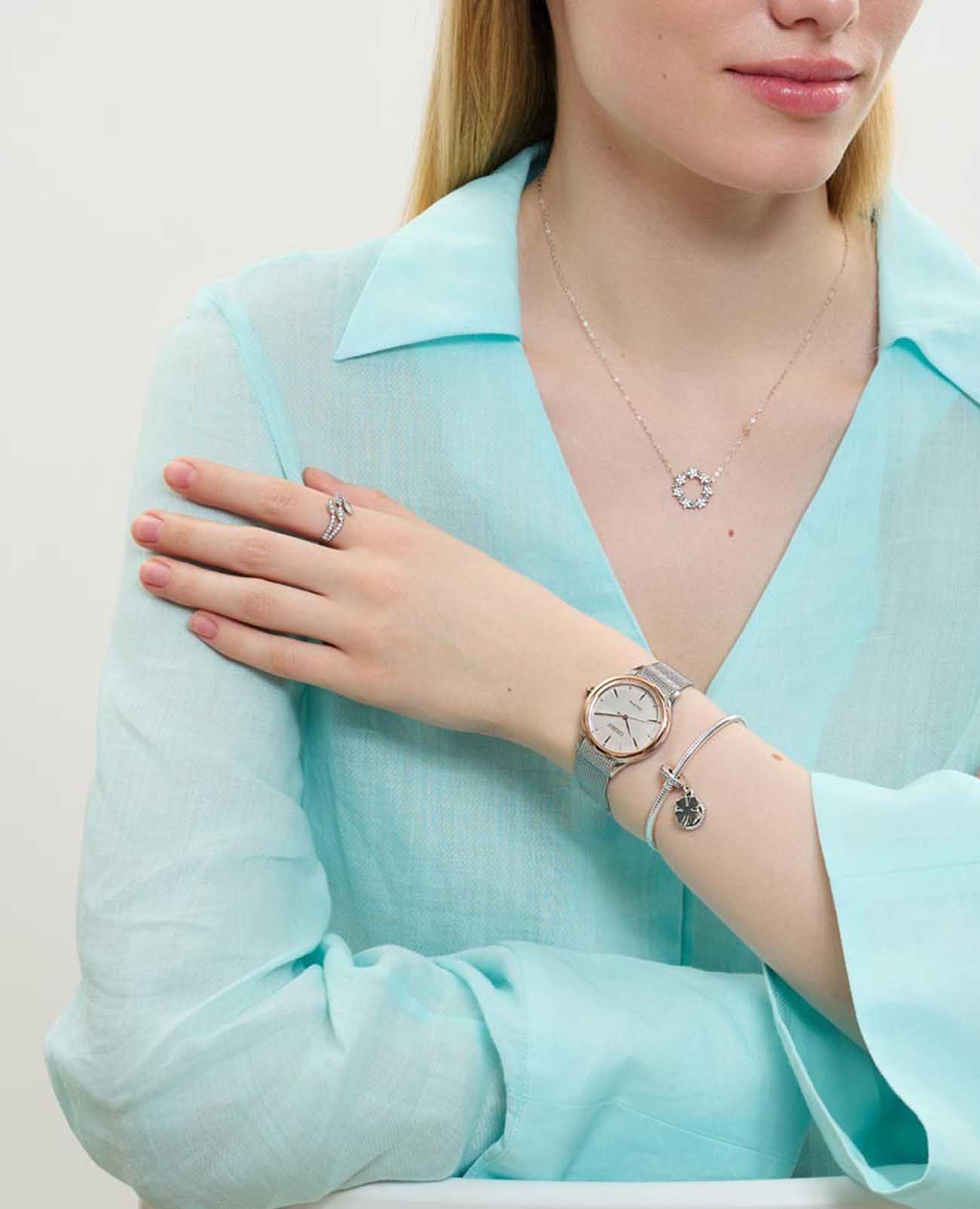 Часы Citizen EM1156-80X созданы для ценителей современного стиля и утончённой элегантности. Модель выполнена в Японии и оснащена кварцевым механизмом Citizen E031 с инновационной системой Eco-Drive, которая работает на солнечной энергии и не требует замены батарейки, обеспечивая до 180 дней автономной работы. Золотистый циферблат завораживает своими изысканными переливами, а изящные метки в виде штрихов и точек придают аксессуару лёгкость и гармонию. Сапфировое стеклоСапфировое стеклоПрочный и надёжный материал из кристалла сапфира синтетического происхождения, характеризующийся особой твёрдостью и устойчивостью к царапинам и повреждениям. надёжно защищает циферблат от царапин и повреждений. Корпус диаметром 32,5 мм и толщиной 7,6 мм изготовлен из нержавеющей стали, вес изделия составляет всего 45 граммов, что обеспечивает комфортное ношение в течение всего дня. БезельБезельВнешний ободок, закрепляющий стекло. В спортивных часах так называется поворотное кольцо с делениями на циферблате, выполняет роль таймера – замеряет отрезки времени на шкале. Неподвижный безель – элемент декора. Однонаправленно вращающийся безель на дайверских часах позволяет фиксировать моменты погружения и выныривания на поверхность. часов отличается золотистым IP-покрытиемIP-покрытиеМетод ионного напыления. Демонстрирует повышенную устойчивость к истиранию, окислению и химическим веществам. Под воздействием высокого давления и температуры около 1500°C молекулы металла надёжно соединяются с частицами корпуса часов., что придаёт аксессуару особый шарм. Заводная головка украшена камнем в форме кабошона, добавляя изысканный акцент. Стальной браслет миланского плетения c раскладным замкомРаскладной замокДанный вариант застежки используется только на часах с металлическим браслетом. Отличительная особенность такого крепления в том, что длина браслета становится универсальной и вы можете самостоятельно отрегулировать нужный вам размер – застежка просто двигается по браслету часов. удобно фиксируется на запястье и подчёркивает современный характер часов. Водозащита 50WR позволяет не беспокоиться о случайном попадании влаги. Эта модель станет стильным дополнением к вашему образу и подчеркнёт вашу индивидуальность.