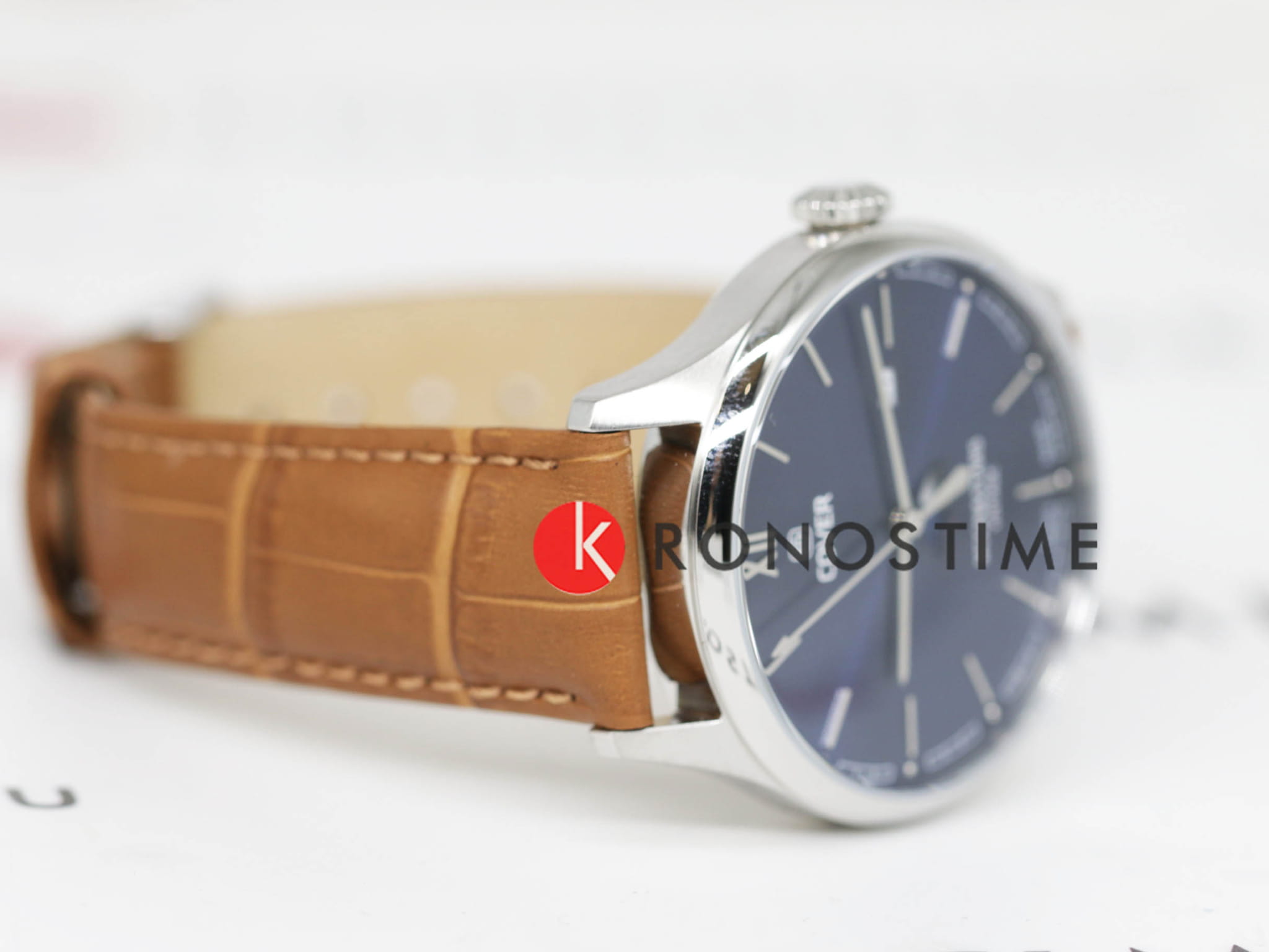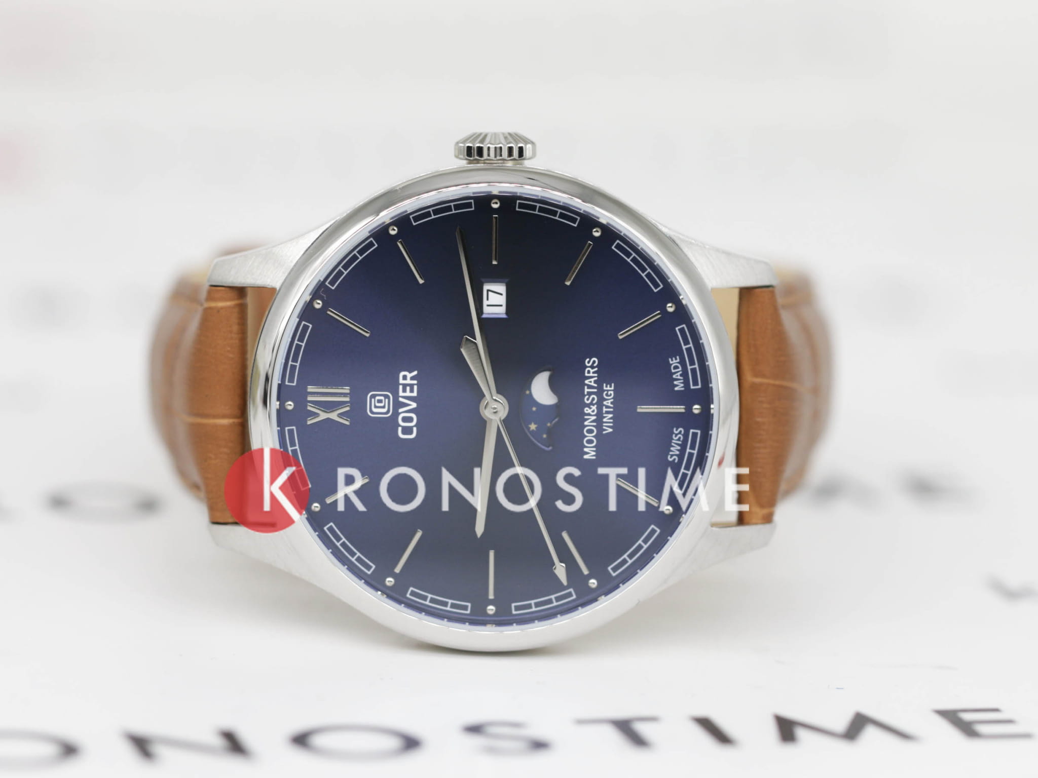 Мужские наручные часы Cover CO202.03 из коллекции Chapman Moon&Stars сочетают в себе классический дизайн и высокую точность швейцарского производства. Модель обладает круглым корпусом диаметром 41 мм, изготовленным из нержавеющей стали. Синий циферблат оснащен индикатором фаз Луны и окном даты на «3 часах». Для защиты используется минеральное стеклоМинеральное стеклоМинеральное стекло представляет собой искусственно выращенный минерал кварца. Такое стекло отличается особой устойчивостью к повреждениям и царапинам. Уступает по некоторым качествам сапфировому стеклу. с антибликовым покрытиемАнтибликовое покрытиеСлой оксида металла в 0,13-0,3 микрон, благодаря которому стекло часов не бликует и не отражает свет. Антибликовое покрытие уменьшает отражение света в 10 раз, обеспечивая отличную читаемость показателей циферблата., обеспечивающее прочную защиту от царапин и превосходную читаемость времени даже при ярком свете. Часы работают на кварцевом механизме, гарантирующем исключительную точность хода. Браслет выполнен из кожи с классической застежкой для комфортного ношения. Водонепроницаемость достигает 5 атмосфер (50 метров), что позволяет использовать их в повседневной жизни, однако не рекомендуется для плавания или дайвинга. Эти швейцарские часы станут идеальным дополнением как классического, так и современного образа мужчины, ценящего качество и стиль.