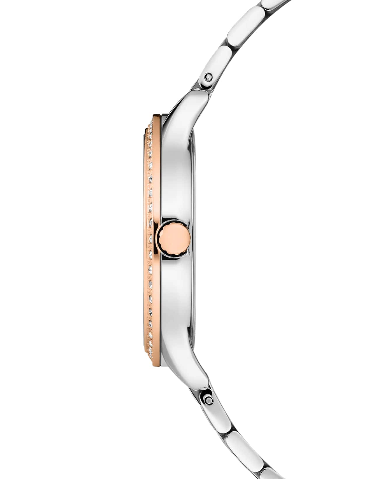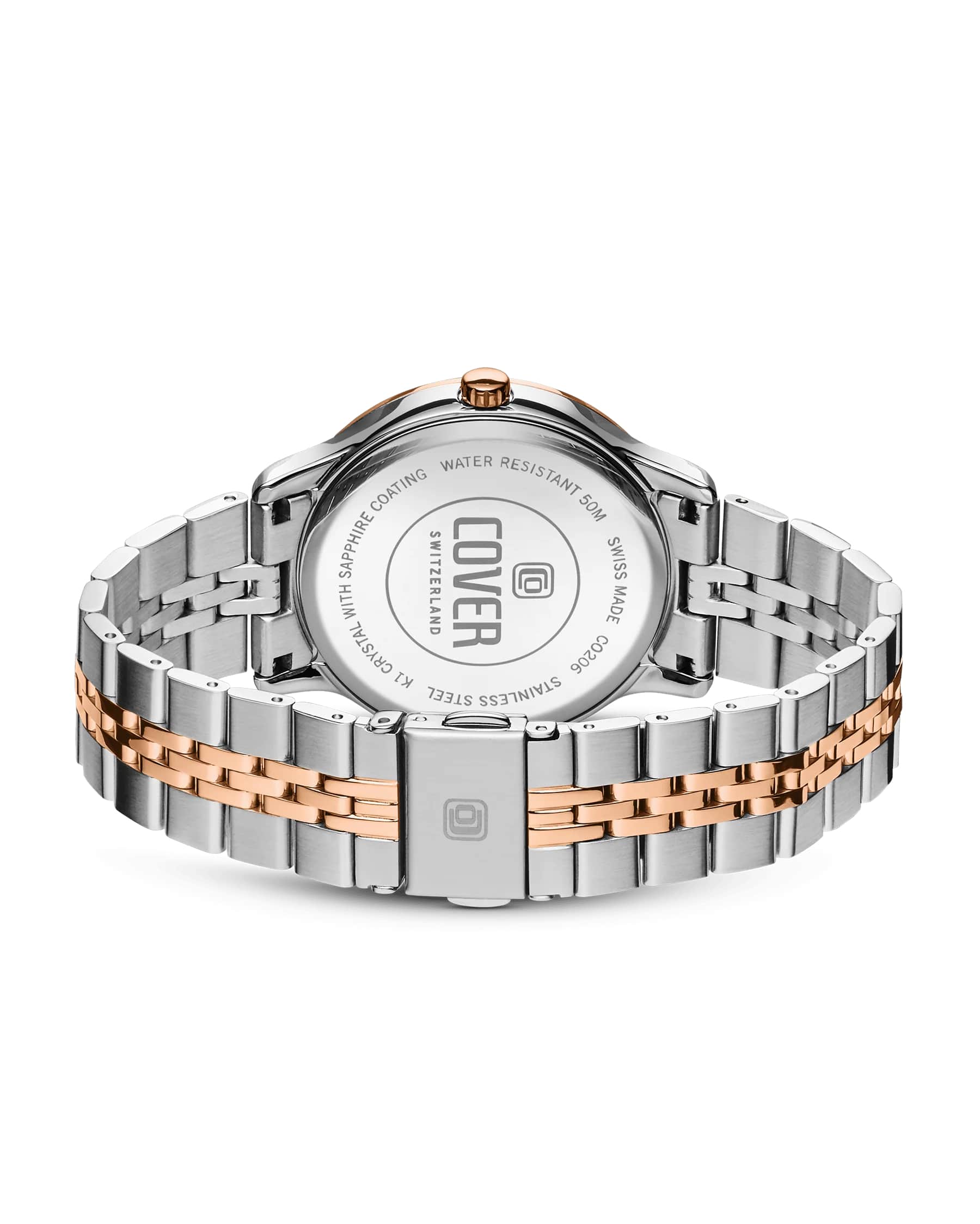 Женские наручные часы Cover Saraya CO206.03 сочетают в себе элегантный дизайн и надежность современных технологий. Модель обладает круглым корпусом диаметром 36 мм, изготовленным из нержавеющей стали, что обеспечивает высокую устойчивость к внешним воздействиям. Безель из стали с PVD-покрытиемPVDУльтратонкое покрытие наносится в технике вакуумного напыления, сочетает в себе нитрид титана особой прочности со слоем золота или оксида хрома. Несёт в себе декоративную или защитную функцию. декорирован кристаллами Swarowsky, которые придают часам особый шик и неповторимый вид. Для защиты используется сапфировое стеклоСапфировое стеклоПрочный и надёжный материал из кристалла сапфира синтетического происхождения, характеризующийся особой твёрдостью и устойчивостью к царапинам и повреждениям., обеспечивающее прочную защиту от царапин. Браслет выполнен из нержавеющей стали на раскладной застёжкеРаскладная застёжкаТакой тип застёжки используется только на браслетах из металла. Она никогда не раскрывается полностью, происходит разделение на 2 и более частей. Раскладывающая застёжка снизит вероятность потери часов к минимуму., которая отличается удобством использования. Часы работают на кварцевом механизме, основанном на ETA 902.002, что гарантирует точное время без необходимости подзаводки. Водонепроницаемость часов составляет 5 атмосфер, что позволяет использовать их в повседневной жизни, однако не рекомендуется для плавания или водных видов спорта.