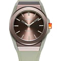 Часы D1 Milano CLRJ08 Sand Carbonlite из коллекции Carbonlite - воплощение инновационного дизайна и передовых материалов. Циферблат с метками в виде штрихов выполнен по технологии Sunray (солнечные лучи). Круглый корпус диаметром 40,5 мм и толщиной 9,7 мм изготовлен из композита углеродного нейлона с поликарбонатной рамкой. Циферблат выполнен в виде "сэндвича" из углеродного волокна. Часы оснащены кварцевым механизмом Miyota GL22, минеральное стекломМинеральное стеклоМинеральное стекло представляет собой искусственно выращенный минерал кварца. Такое стекло отличается особой устойчивостью к повреждениям и царапинам. Уступает по некоторым качествам сапфировому стеклу. с антибликовым покрытием и светло-зеленым силиконовым ремешком. Водонепроницаемость 5 АТМ, вес всего 47 г. Особенность этой коллекции - использование композитных материалов из углеродного нейлона и волокна, специально разработанных D1 Milano. Нить изготовлена из EPA-CF, прочность на растяжение 140 МПа, деформация 155 градусов, ударная вязкость 18,67 кДж/м2.