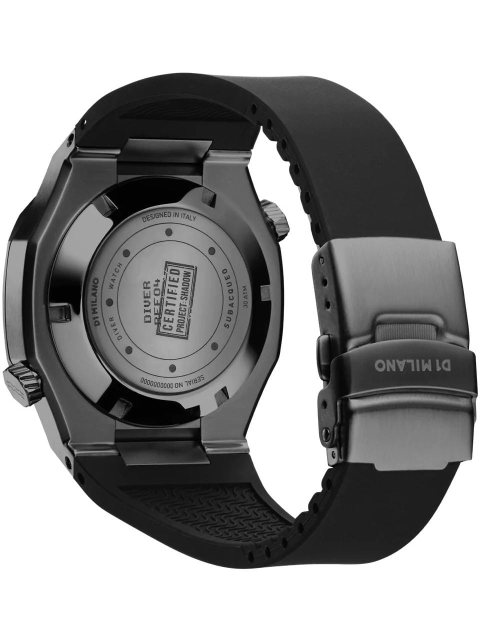 Часы D1 Milano DVRJSH — это механические мужские часы с автоподзаводом, которые поражают своим спортивным стилем и точностью исполнения. С этими удобными часами покорение морских глубин выйдет на новый уровень. Корпус с безелемБезельВнешний ободок, закрепляющий стекло. В спортивных часах так называется поворотное кольцо с делениями на циферблате, выполняет роль таймера – замеряет отрезки времени на шкале. Неподвижный безель – элемент декора. Однонаправленно вращающийся безель на дайверских часах позволяет фиксировать моменты погружения и выныривания на поверхность. из нержавеющей стали с PVDPVDУльтратонкое покрытие наносится в технике вакуумного напыления, сочетает в себе нитрид титана особой прочности со слоем золота или оксида хрома. Несёт в себе декоративную или защитную функцию. покрытием гармонично сочетается с таким же черным циферблатом. Запас хода 41 час. Циферблат защищен сапфировым стекломСапфировое стеклоПрочный и надёжный материал из кристалла сапфира синтетического происхождения, характеризующийся особой твёрдостью и устойчивостью к царапинам и повреждениям., а черный силиконовый ремешок придает ему элегантный вид. На циферблате часов есть окошко даты в положении 4 часа. Водонепроницаемость часов достигает 300 метров, что делает их подходящими для для дайвинга.