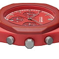 Часы D1 Milano PHBJ05 — это элегантные кварцевые часы, которые впечатляют своим функциональным дизайном, подходят как для мужчин, так и для женщин. Их высокая надежность превращает эти часы в незаменимый аксессуар на каждый день. ХронографХронографФункция позволяет измерять отрезки времени с особой точностью: часы, минуты, секунды. Верным признаком хронографа является наличие на циферблате 3 дополнительных окошек-счётчиков. оснащен секундомеромСекундомерСекундоме́р — прибор, способный измерять интервалы времени с точностью до долей секунды. и красным циферблатом, защищенным минеральным стекломМинеральное стеклоМинеральное стекло представляет собой искусственно выращенный минерал кварца. Такое стекло отличается особой устойчивостью к повреждениям и царапинам. Уступает по некоторым качествам сапфировому стеклу.. На циферблате расположены накладные метки в виде штрихов и три дополнительных циферблата с серебристыми стрелками, а также окошко календаря в районе отметки 6 часов. Пластиковый ярко-красный безельБезельВнешний ободок, закрепляющий стекло. В спортивных часах так называется поворотное кольцо с делениями на циферблате, выполняет роль таймера – замеряет отрезки времени на шкале. Неподвижный безель – элемент декора. Однонаправленно вращающийся безель на дайверских часах позволяет фиксировать моменты погружения и выныривания на поверхность. отлично сочетается с красным пластиковым браслетом, застежкой «бабочка»Застёжка "бабочка"Такой вид застёжки дополняется предохранителями, помогающими избежать случайного раскрытия браслета. Обладают изящным исполнением. . Стальная задняя крышка этих часов крепится на 4-х винтах. Водонепроницаемость до 50 метров делает эти часы идеальным выбором для повседневного использования.