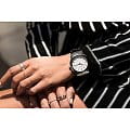 Женские наручные часы из коллекции Ultra Thin сочетают в себе современный дизайн и надежность технологий. Модель обладает круглым корпусом диаметром 38 мм, выполненным из высококачественной нержавеющей стали. Толщина корпуса составляет всего 6 мм, что делает часы ультратонкими и комфортными для повседневного использования. Циферблат украшен серебристыми стрелками и индексами, создавая элегантный и лаконичный образ. Защиту циферблата обеспечивает минеральное стеклоМинеральное стеклоМинеральное стекло представляет собой искусственно выращенный минерал кварца. Такое стекло отличается особой устойчивостью к повреждениям и царапинам. Уступает по некоторым качествам сапфировому стеклу. с антибликовым покрытиемАнтибликовое покрытиеСлой оксида металла в 0,13-0,3 микрон, благодаря которому стекло часов не бликует и не отражает свет. Антибликовое покрытие уменьшает отражение света в 10 раз, обеспечивая отличную читаемость показателей циферблата., известное своей устойчивостью к царапинам и высокой прозрачностью. Часы оснащены кварцевым механизмом Miyota 1L22, гарантирующим точность хода без необходимости подзаводки. Ремешок выполнен из натуральной кожи черного цвета, что обеспечивает комфортное ношение на протяжении всего дня. Водонепроницаемость модели составляет 5 атмосфер (50 метров), что позволяет использовать часы в повседневной жизни, включая контакт с водой при мытье рук или дожде, однако не рекомендуется для погружений или активных водных видов спорта. Изготовленные в Италии, эти часы станут стильным аксессуаром, идеально дополняющим как деловой, так и casual-образ.