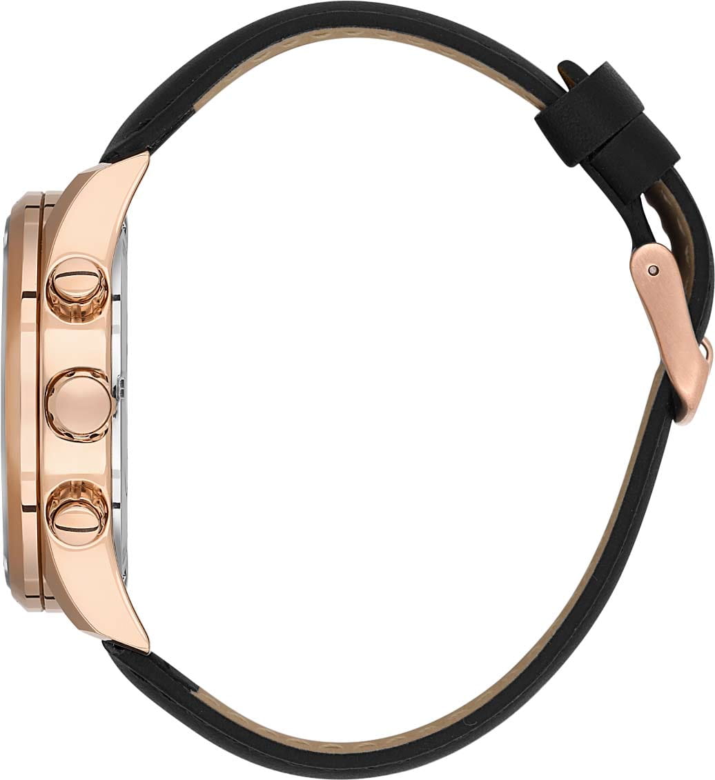 Мужские кварцевые часы-хронограф Daniel Klein — это фирменный аксессуар для ценящих своё время. Корпус диаметром 43 мм выполнен из металла с IP-покрытиемIP-покрытиеМетод ионного напыления. Демонстрирует повышенную устойчивость к истиранию, окислению и химическим веществам. Под воздействием высокого давления и температуры около 1500°C молекулы металла надёжно соединяются с частицами корпуса часов. цвета розового золота. Циферблат чёрного цвета оформлен штрихами, стрелками и тремя субциферблатами хронографа. Присутствуют индикаторы 24-часового формата времени. Окошко даты расположено между 4 и 5 часами. Стрелки и метки с люминесцентным покрытиемЛюминесцентное покрытиеПозволяет считывать показания времени в темноте. Производители наносят на стрелки, часовые индексы, безель или поверхность циферблата светонакопительный состав, дающий холодное свечение., обеспечивающим хорошую читаемость в темноте. Циферблат защищён минеральным стекломМинеральное стеклоМинеральное стекло представляет собой искусственно выращенный минерал кварца. Такое стекло отличается особой устойчивостью к повреждениям и царапинам. Уступает по некоторым качествам сапфировому стеклу.. Часы оснащены кожаным ремешком на классической пряжке. Водонепроницаемость 50 м позволяет использовать часы в повседневных условиях. Идеальный выбор для тех, кто ценит турецкое качество и универсальный дизайн.
