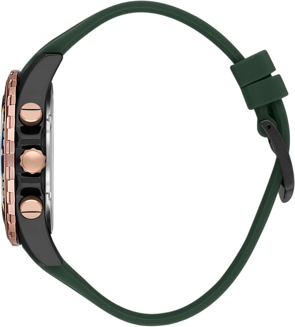 Мужские кварцевые часы-хронограф Daniel Klein — это удобный и многофункциональный аксессуар. Корпус диаметром 44 мм выполнен из металла с IP-покрытиемIP-покрытиеМетод ионного напыления. Демонстрирует повышенную устойчивость к истиранию, окислению и химическим веществам. Под воздействием высокого давления и температуры около 1500°C молекулы металла надёжно соединяются с частицами корпуса часов.. Циферблат зелёного цвета выполнен по технологии Sunray («солнечные лучи») и оформлен штрихами, арабской цифрой 12, стрелками и тремя субциферблатами хронографа. Присутствуют индикаторы 24-часового формата времени и тахиметрТахиметрРазмеченная шкала, располагается на ободке или безеле часов. Тахиметр позволяет рассчитать скорость на определённом участке пути, расстояние измеряется в километрах или милях. на безеле. Окошко даты расположено между 4 и 5 часами. Стрелки и метки с люминесцентным покрытиемЛюминесцентное покрытиеПозволяет считывать показания времени в темноте. Производители наносят на стрелки, часовые индексы, безель или поверхность циферблата светонакопительный состав, дающий холодное свечение., обеспечивающим хорошую читаемость в темноте. Циферблат защищён минеральным стекломМинеральное стеклоМинеральное стекло представляет собой искусственно выращенный минерал кварца. Такое стекло отличается особой устойчивостью к повреждениям и царапинам. Уступает по некоторым качествам сапфировому стеклу.. Заводная головка рифлёная, с защитой. Часы оснащены силиконовым ремешком на классической пряжке. Водонепроницаемость 50 м позволяет использовать часы в повседневных условиях. Идеальный выбор для тех, кто ценит турецкое качество и универсальный дизайн.