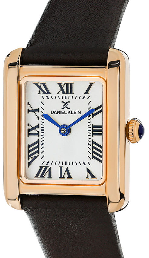 Женские кварцевые часы Daniel Klein — это изысканный аксессуар, который станет любимым ежедневным украшением. Корпус размером 23×29 мм выполнен из металла с IP-покрытиемIP-покрытиеМетод ионного напыления. Демонстрирует повышенную устойчивость к истиранию, окислению и химическим веществам. Под воздействием высокого давления и температуры около 1500°C молекулы металла надёжно соединяются с частицами корпуса часов. цвета розового золота. Циферблат белого цвета оформлен римскими цифрами и стрелками. Циферблат защищён минеральным стекломМинеральное стеклоМинеральное стекло представляет собой искусственно выращенный минерал кварца. Такое стекло отличается особой устойчивостью к повреждениям и царапинам. Уступает по некоторым качествам сапфировому стеклу.. Механизм — японское кварцевое движение калибра Miyota 1L22. Часы оснащены кожаным ремешком на классической пряжке. Водонепроницаемость 30 м позволяет использовать часы в повседневных условиях. Идеальный выбор для тех, кто ценит турецкое качество и элегантный дизайн.